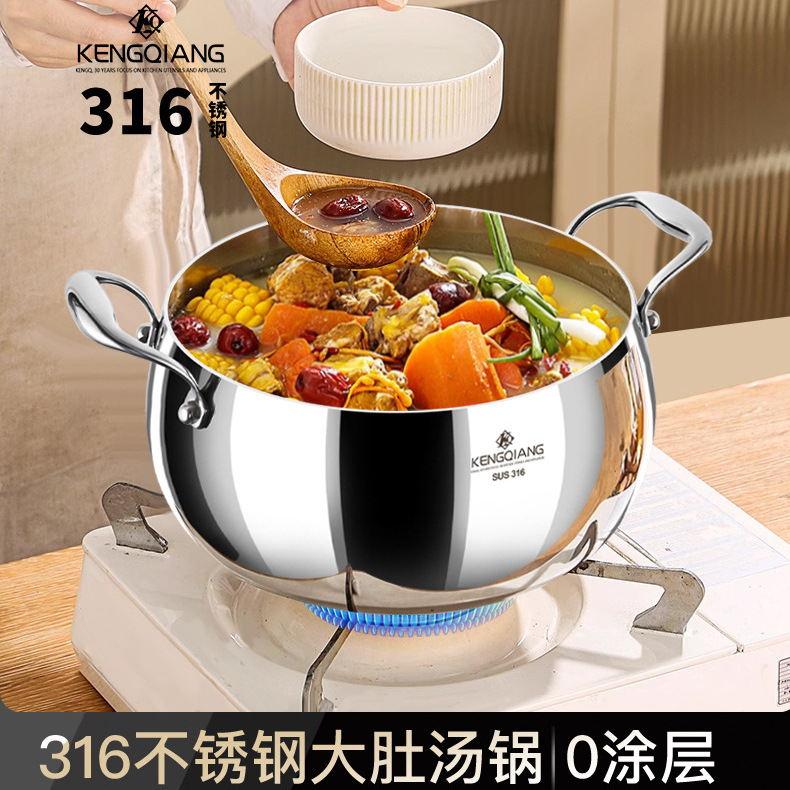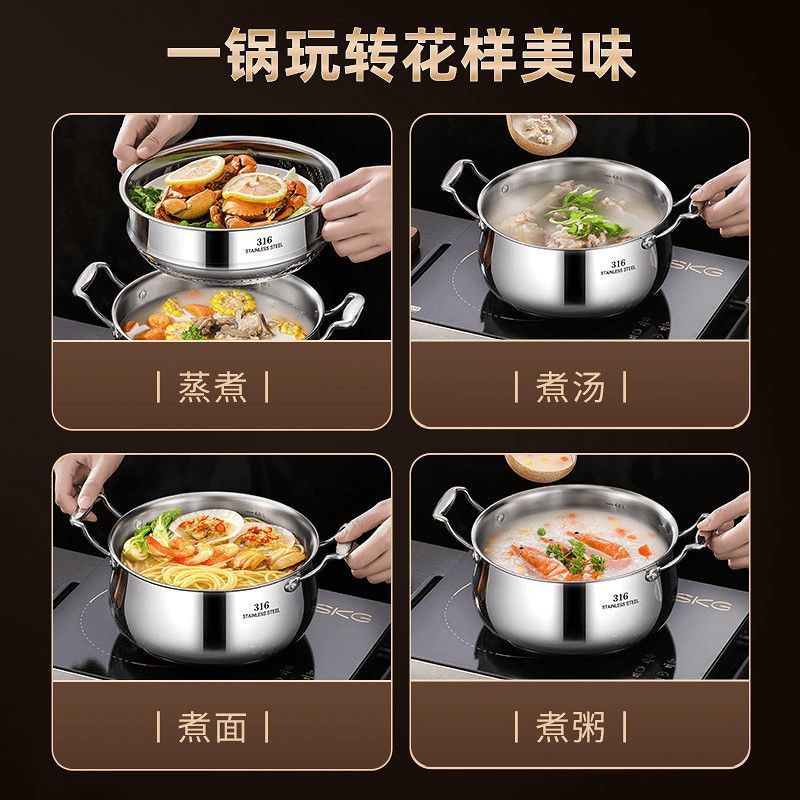 316Lステンレススープ鍋高オーバー防止厚煮鍋両耳蒸し鍋家庭用二重ミルク鍋電磁ストーブ用