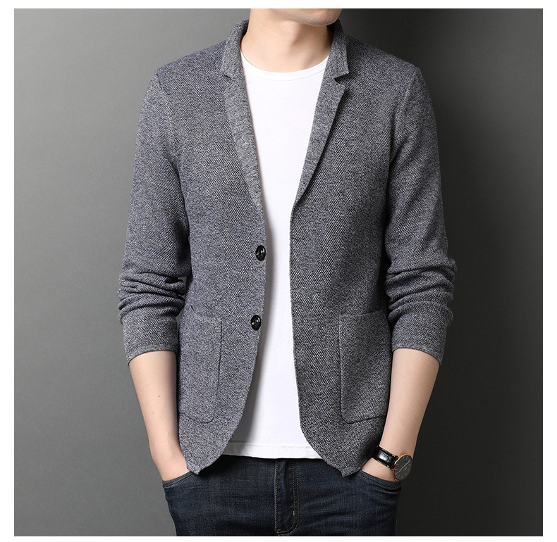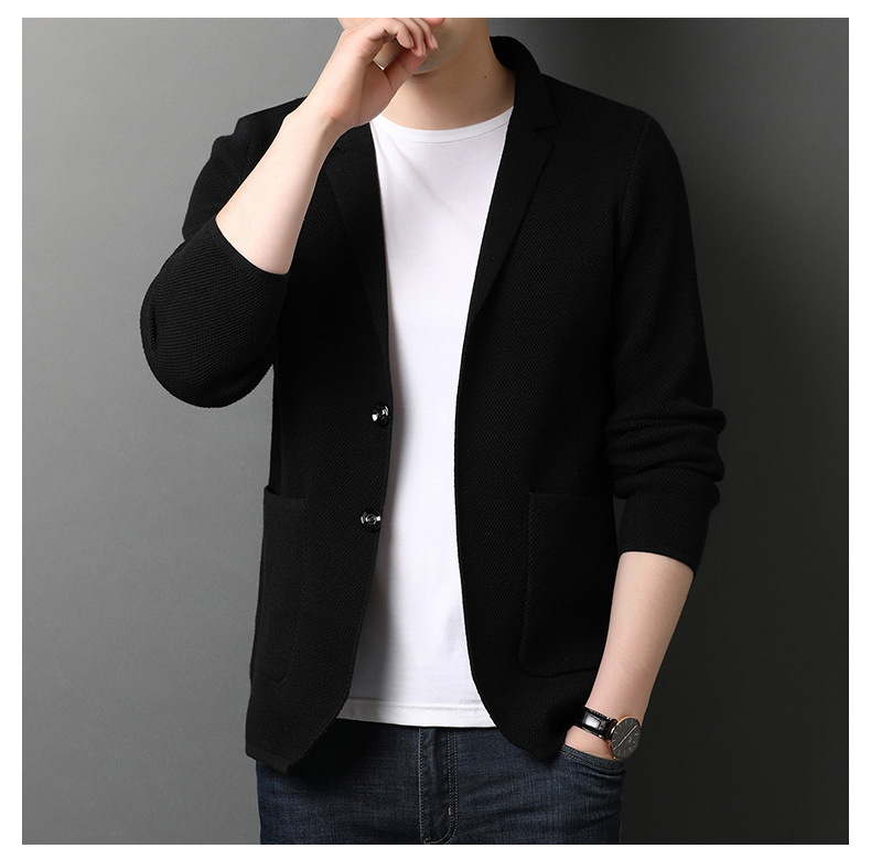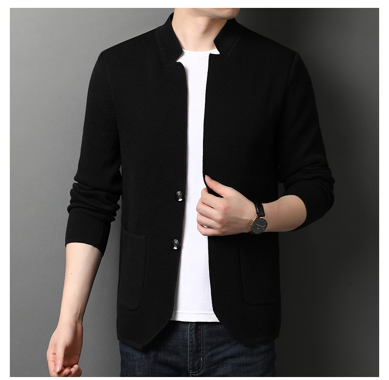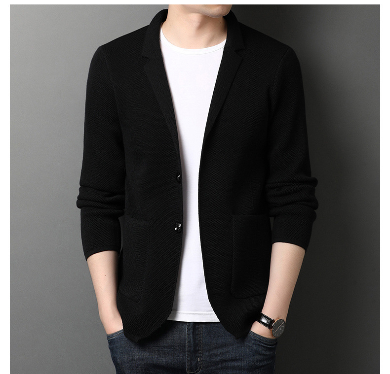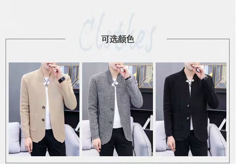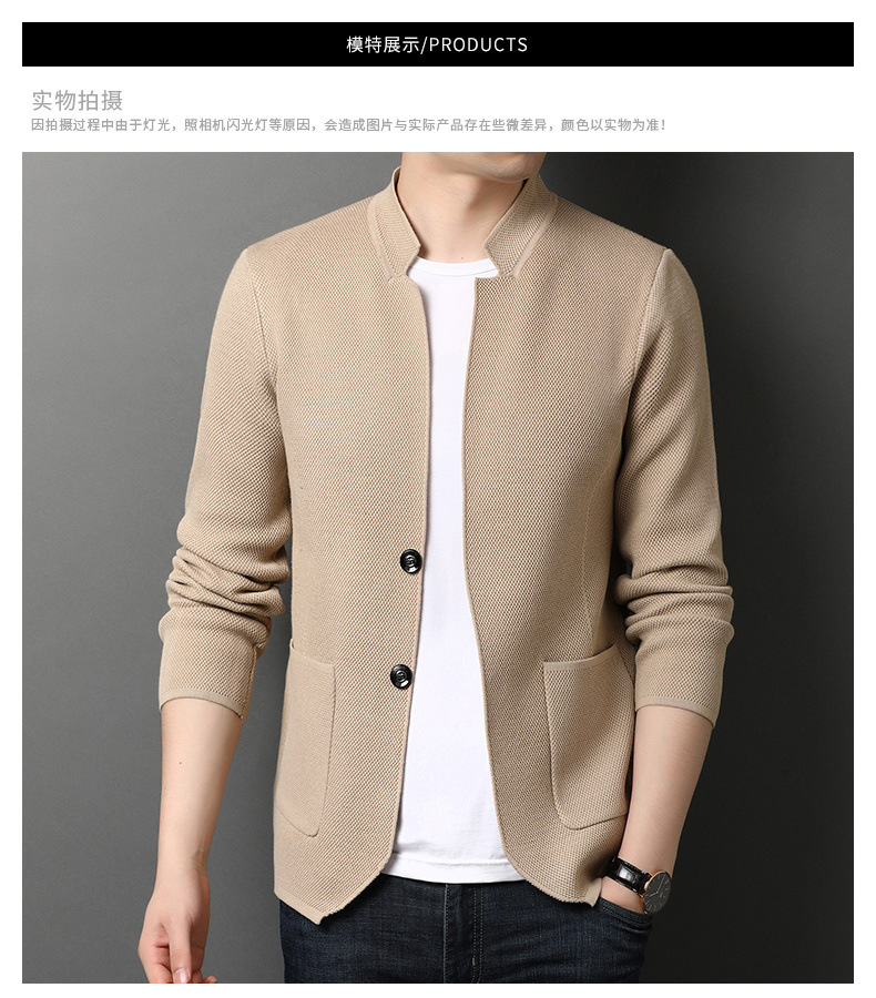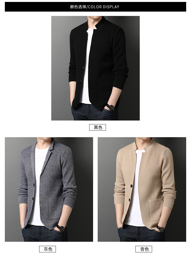 【1765人コレクション】春秋新作ニットカーディガン男性ニット純色男性スーツ折り襟セーター外