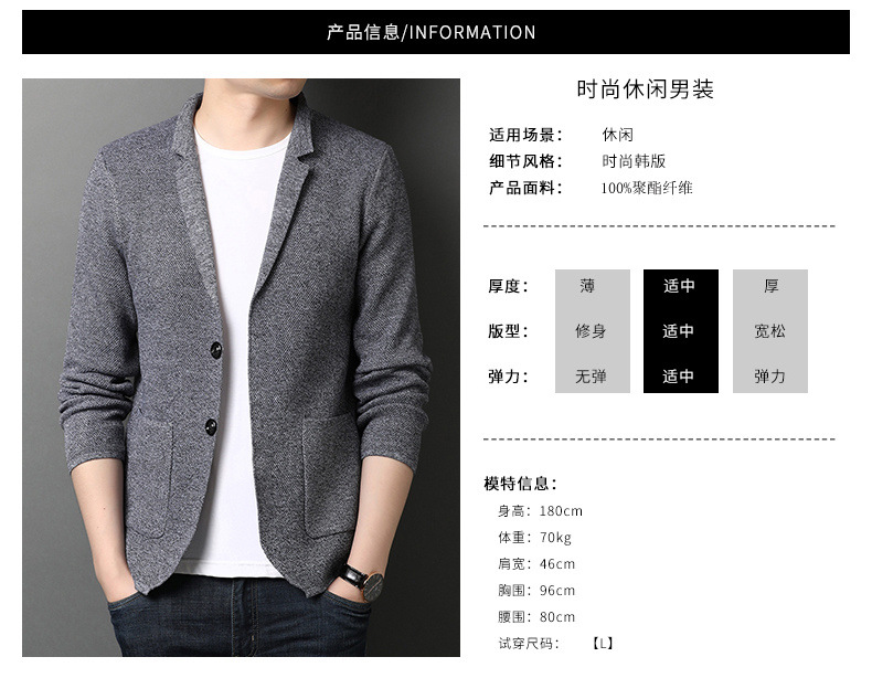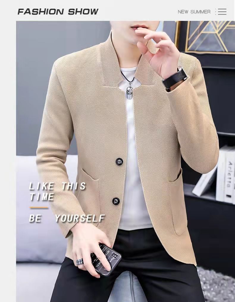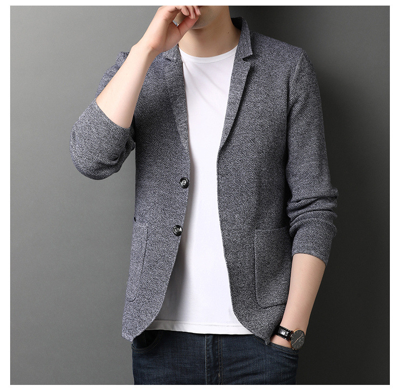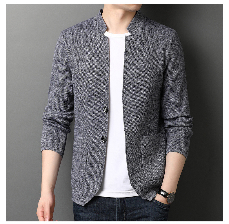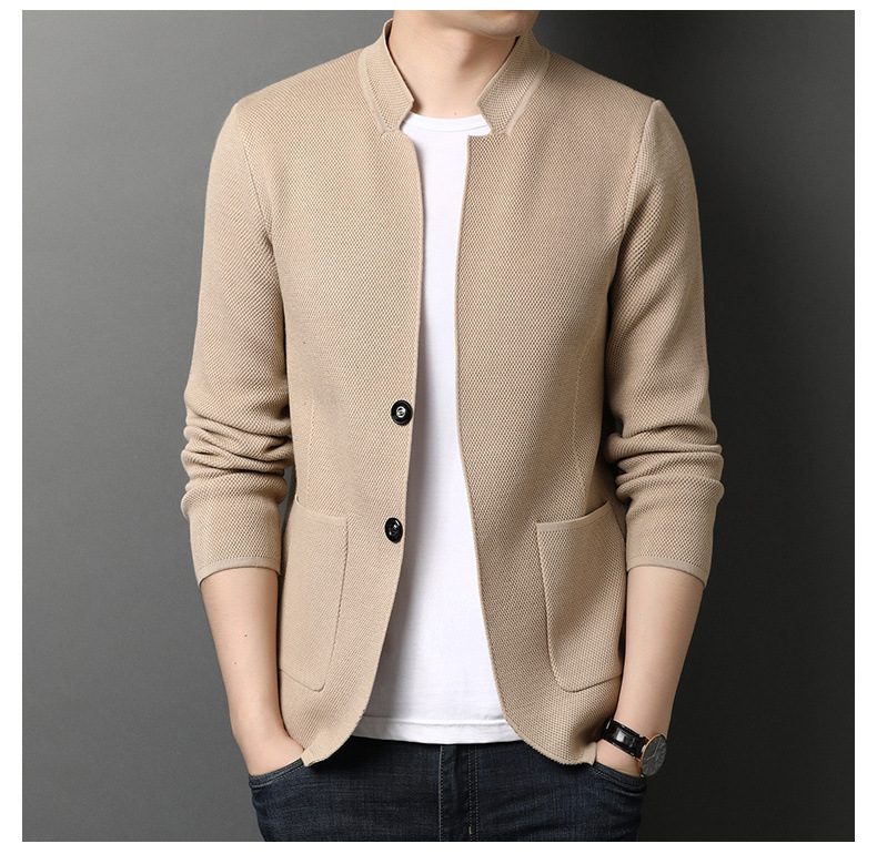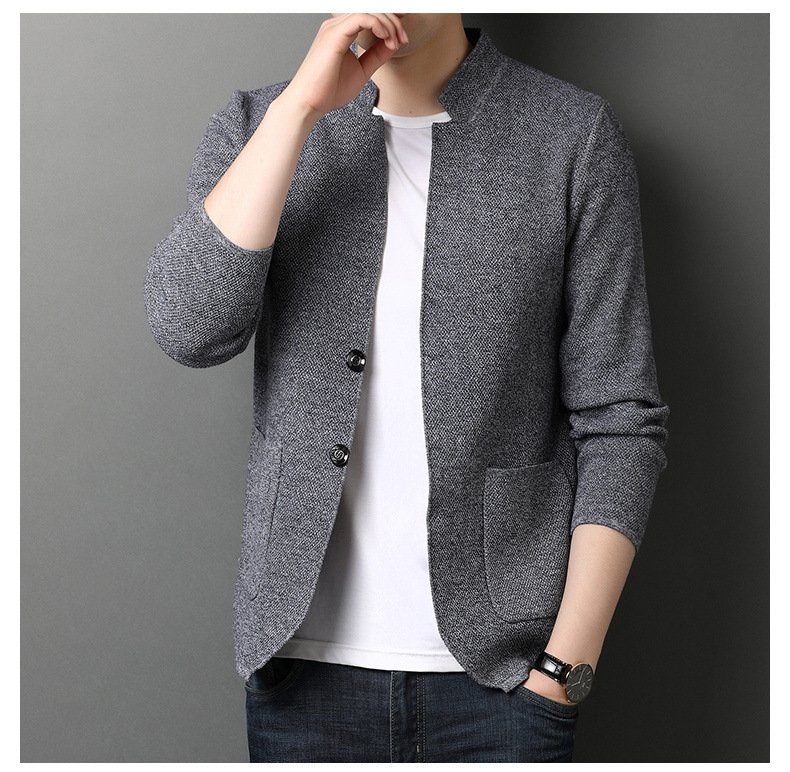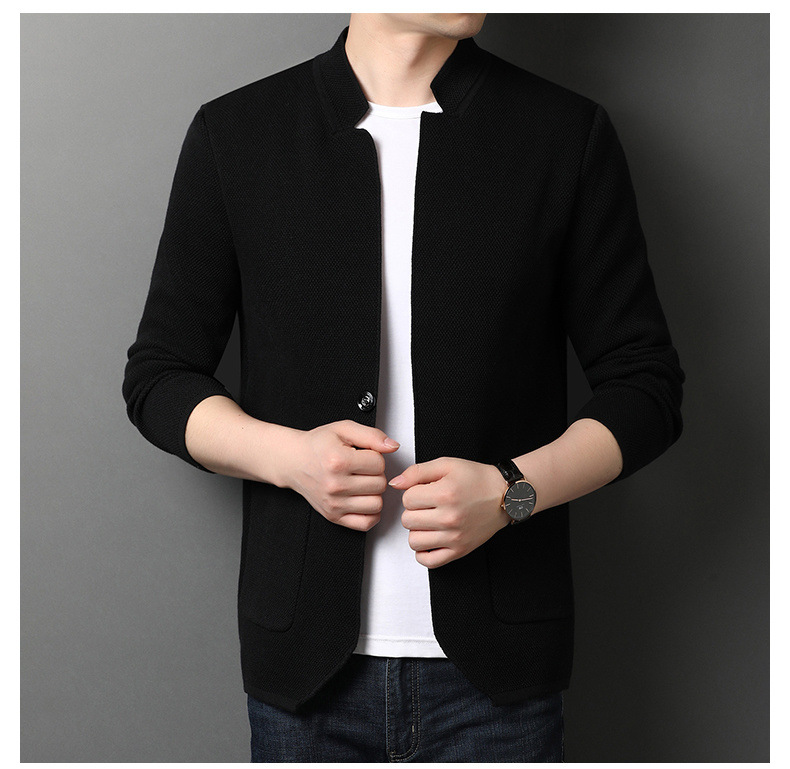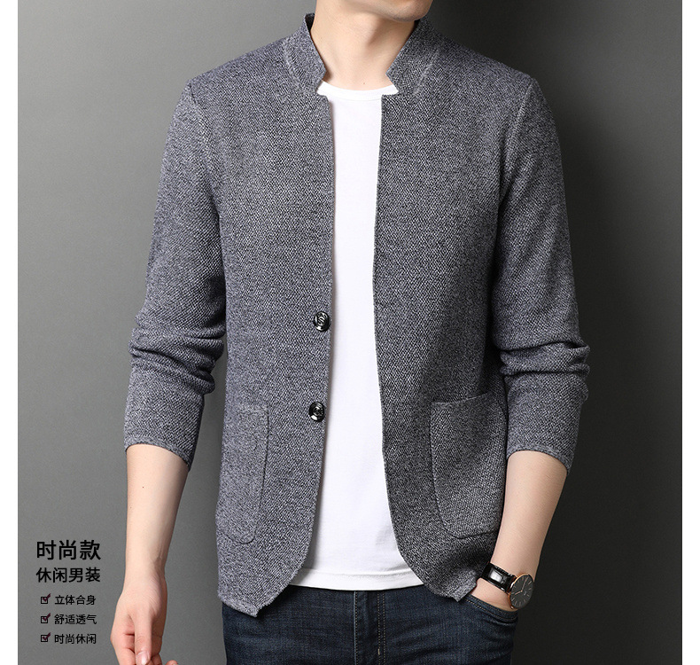 【1765人コレクション】春秋新作ニットカーディガン男性ニット純色男性スーツ折り襟セーター外
