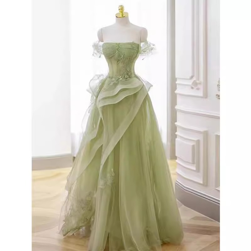 果物の緑の肩のドレスの女性の気質は優雅で高級感があります。