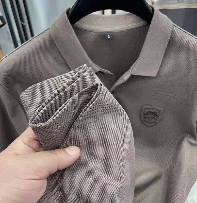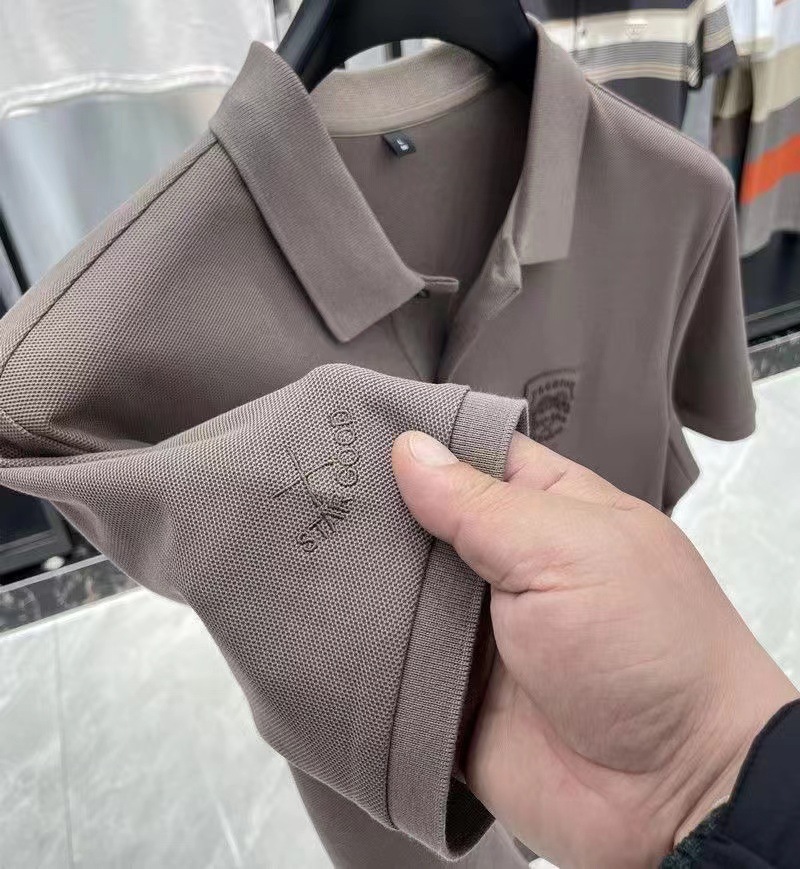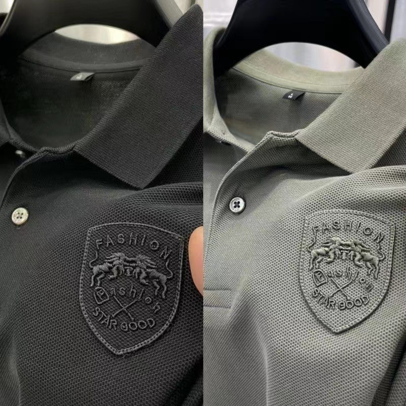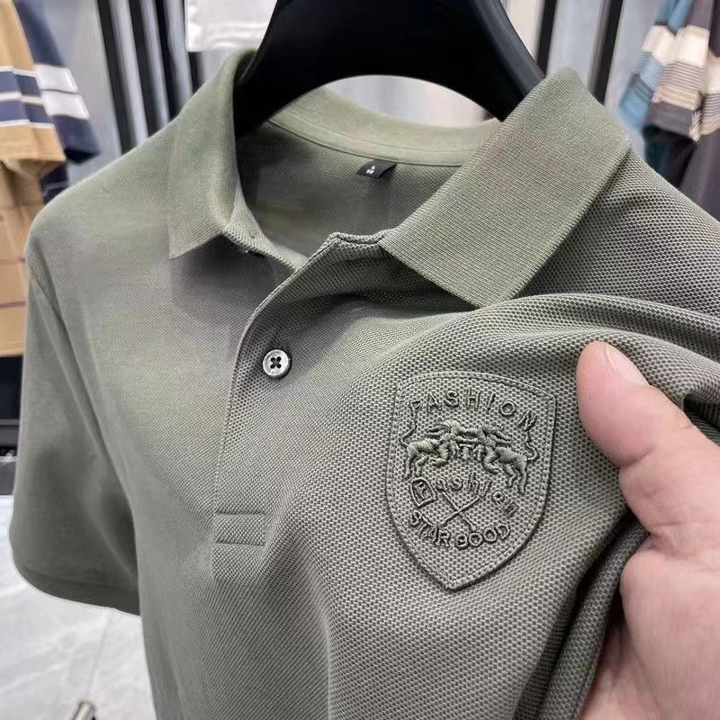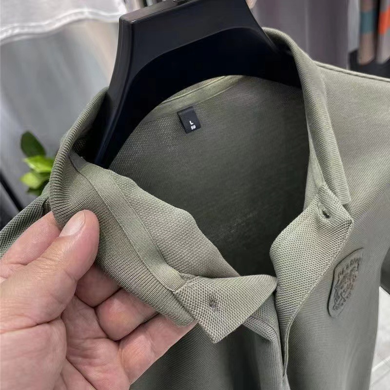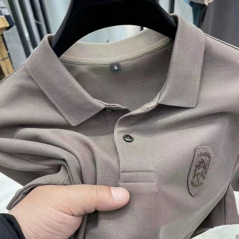 薄手の刺繍ラペルポロシャツメンズ半袖Tシャツ2025新作夏半袖クールでハンサムなメンズスタイル春秋