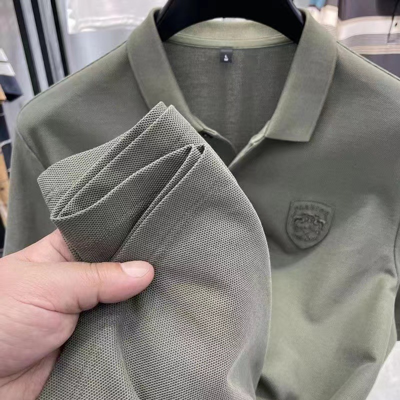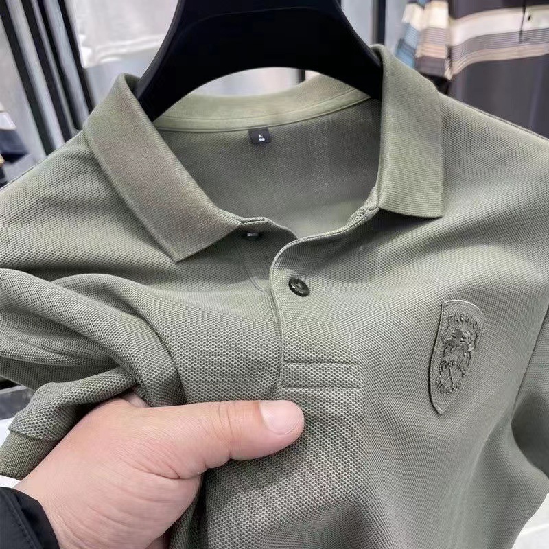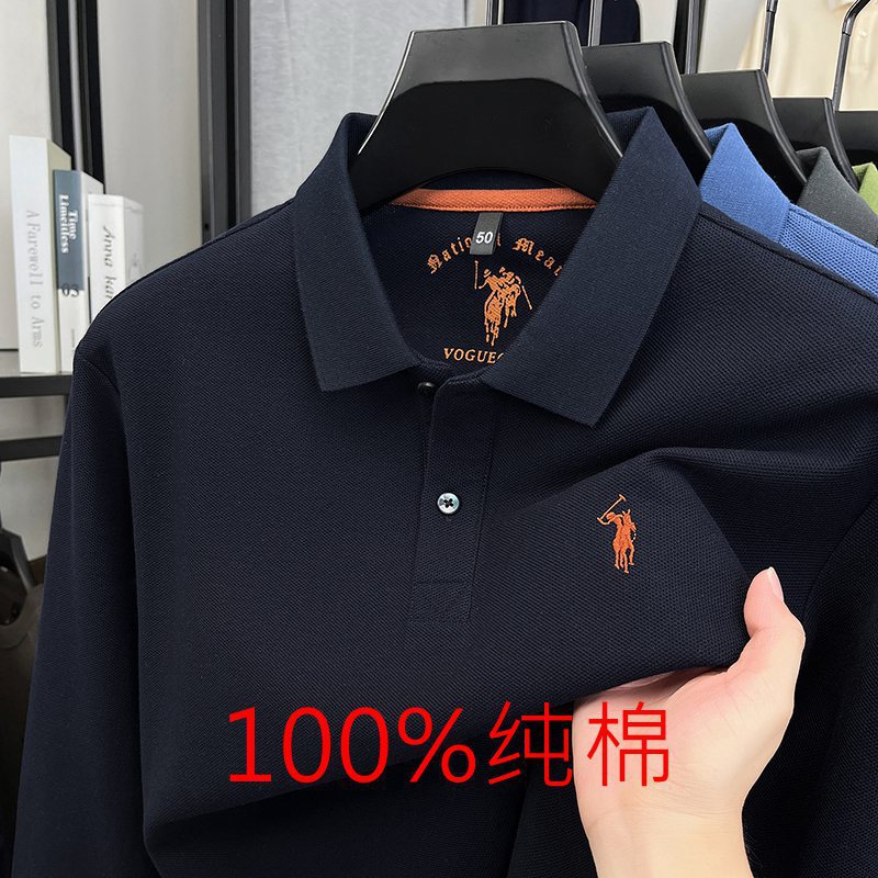 保罗刺绣100%纯棉polo衫长袖男高级感翻领休闲秋季中年男士polo衫
