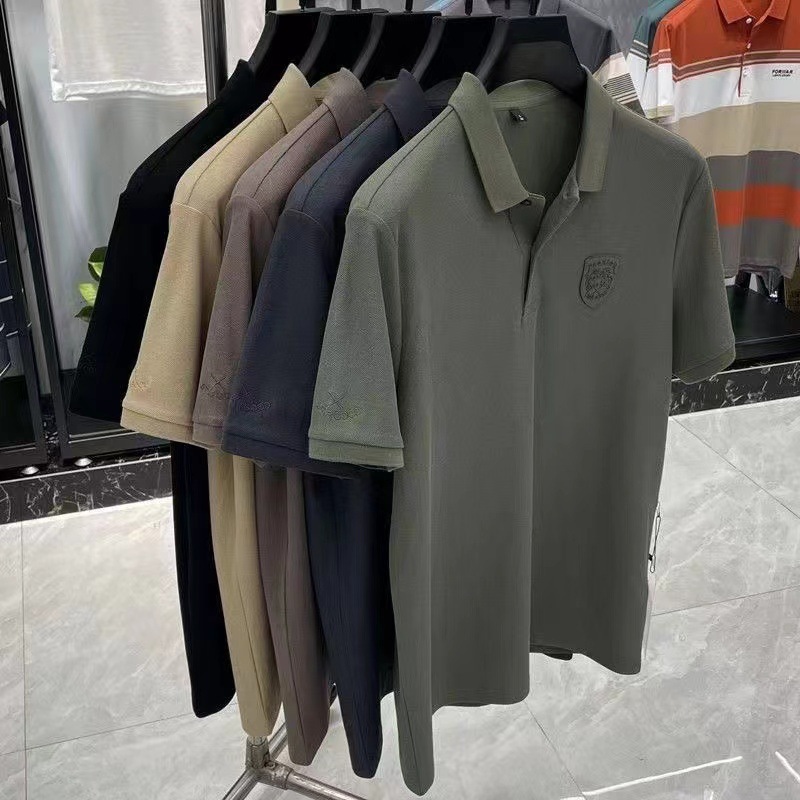 2025新型男子poloシャツ男性半袖tシャツ夏ビジネス襟刺繍シャツ男性薄い上着