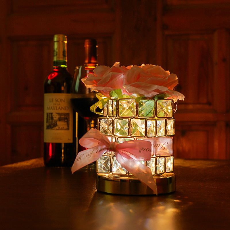クリスタルローズの誕生日プレゼント、女の子向け、ナイトライト、花、ベッドサイドテーブル、デスクトップ、雰囲気のあるテーブルランプ、調光可能