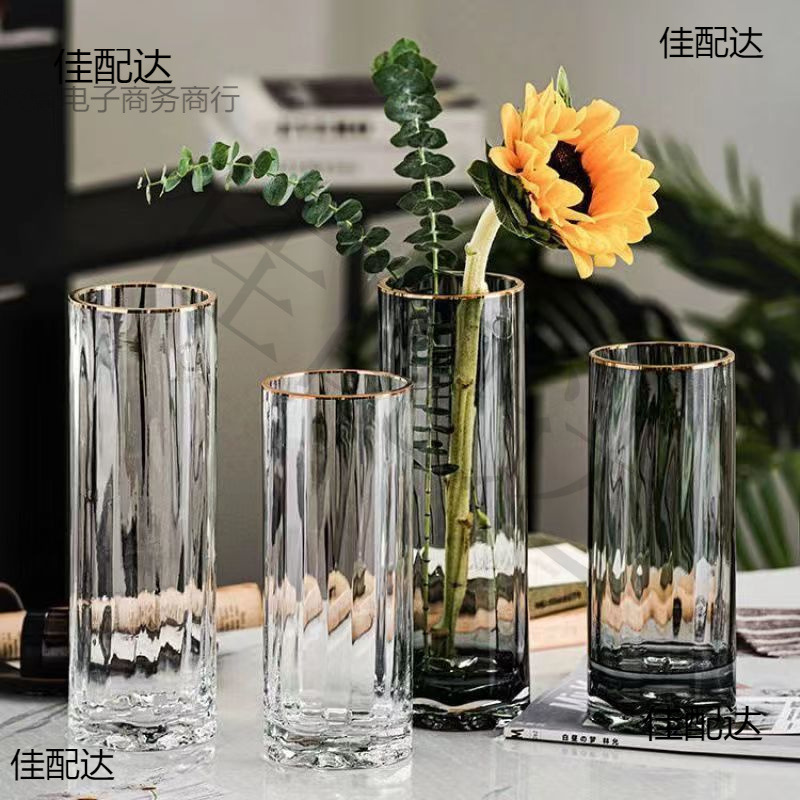 レリーフガラス花瓶ins風北欧ネット赤透明水養富貴竹花客間乾花生け花置物