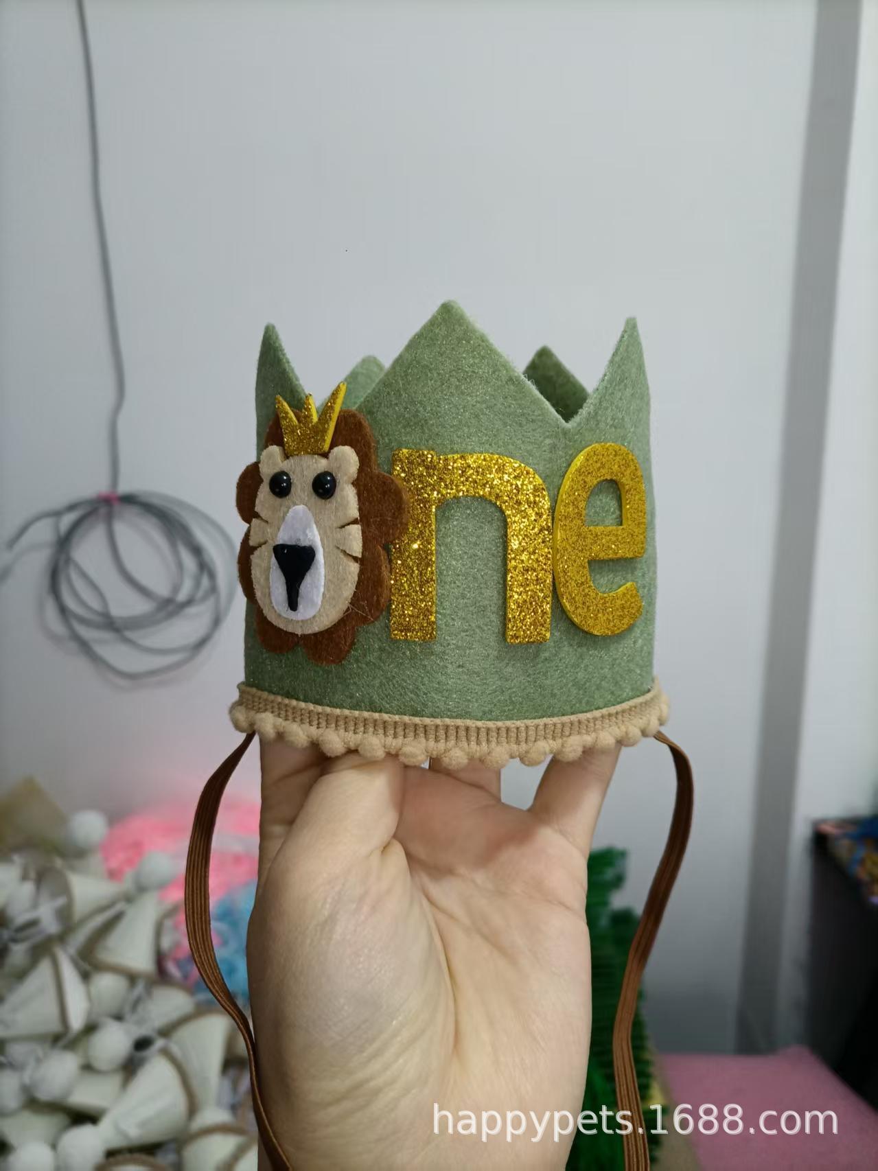 アマゾンクロスボーダー卸売り赤ちゃん誕生日帽パーティー装飾ライオン王冠1歳誕生日装飾用品