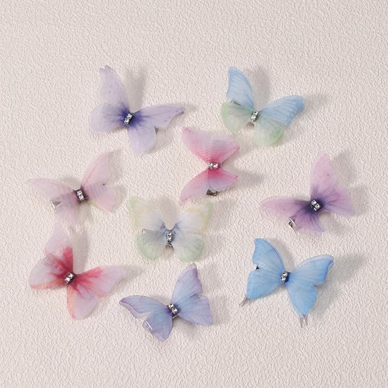 漢服アクセサリー女性のグラデーション二層絹糸小さな蝶のヘアピン古代スタイルの妖精スタイルの古代衣装の頭飾りハイエンドのサイドクリップ