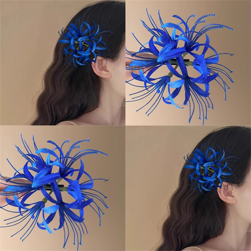 赤い彼岸花のシミュレーション花のヘアピンのサイドクリップのサイドの後頭部の復古的で精巧で高級感があります。