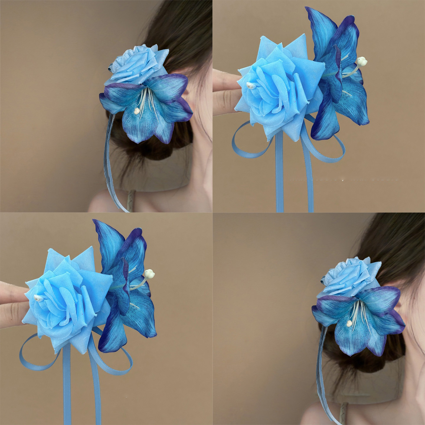 早春の雰囲気 ~ リゾート風ユリのヘアピン超仙のシミュレーション花の写真を撮って髪飾りをします。