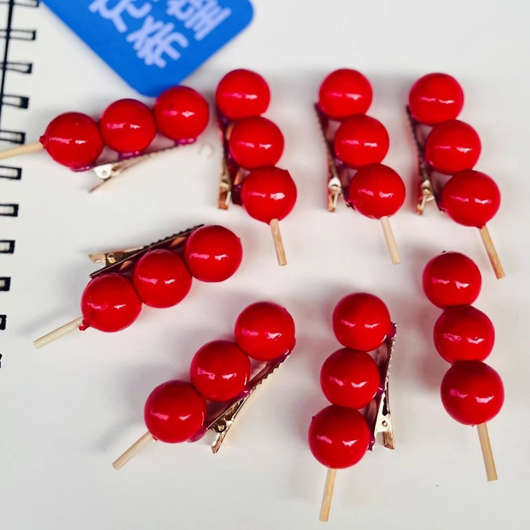 新年の赤い氷の砂糖のヒョウタンのヘアピンの女性の側の前髪の砕いた髪のクリップの頭飾りのアイデアの甘い髪のカモの口のクリップ