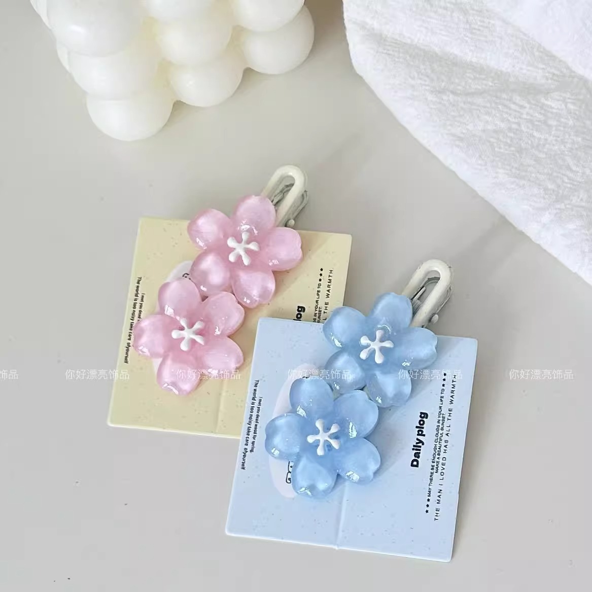 ブルーシャイニングゼリーカラー桜ヘアピン新しいかわいいサイドクリップインガールクリップヘアアクセサリー前髪クリップ
