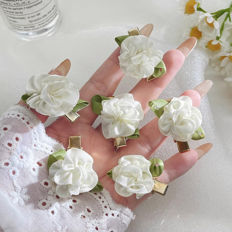 ツバキの花のヘアピンの絶美の側の森系の前髪は花のヘアピンの女性の2025の新型のクリップのカモの口を挟んで飾ります。