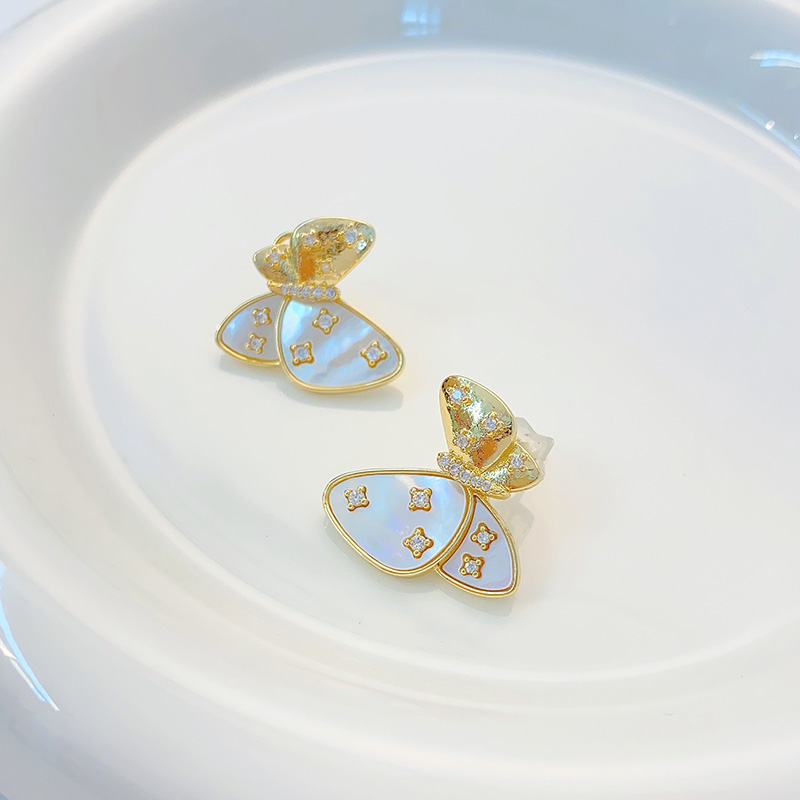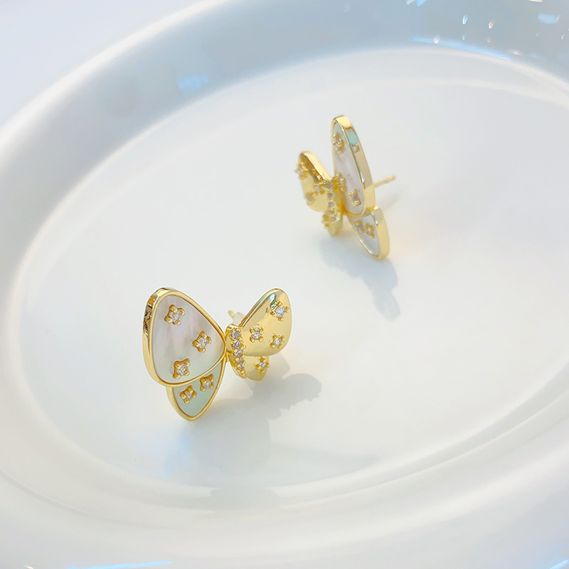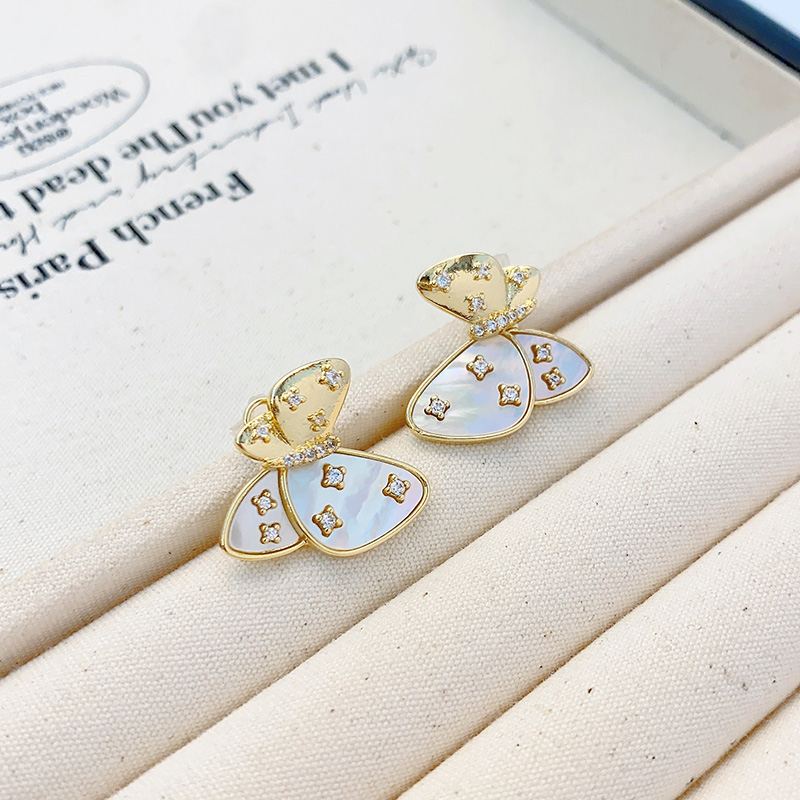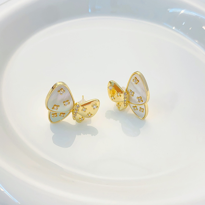 ディザトーン貝母蝶翼イヤリングは、軽い贅沢な風をつけてジルコン貝殻蝶イヤリングs925銀をはめることができる