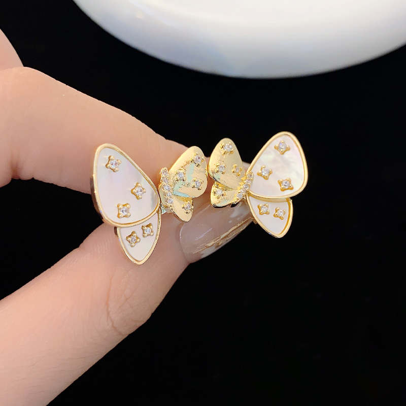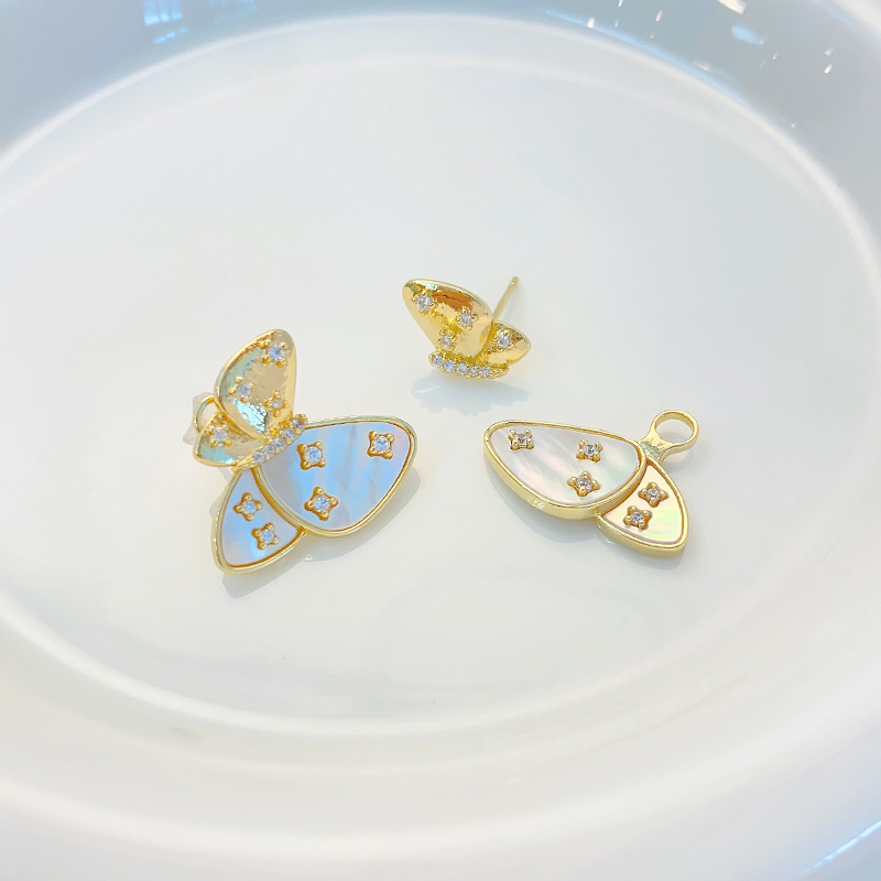 超仙ジルコン貝母蝶ピアス気質新型2つのイヤリングのデザイン感が独特で優雅な耳飾りです。