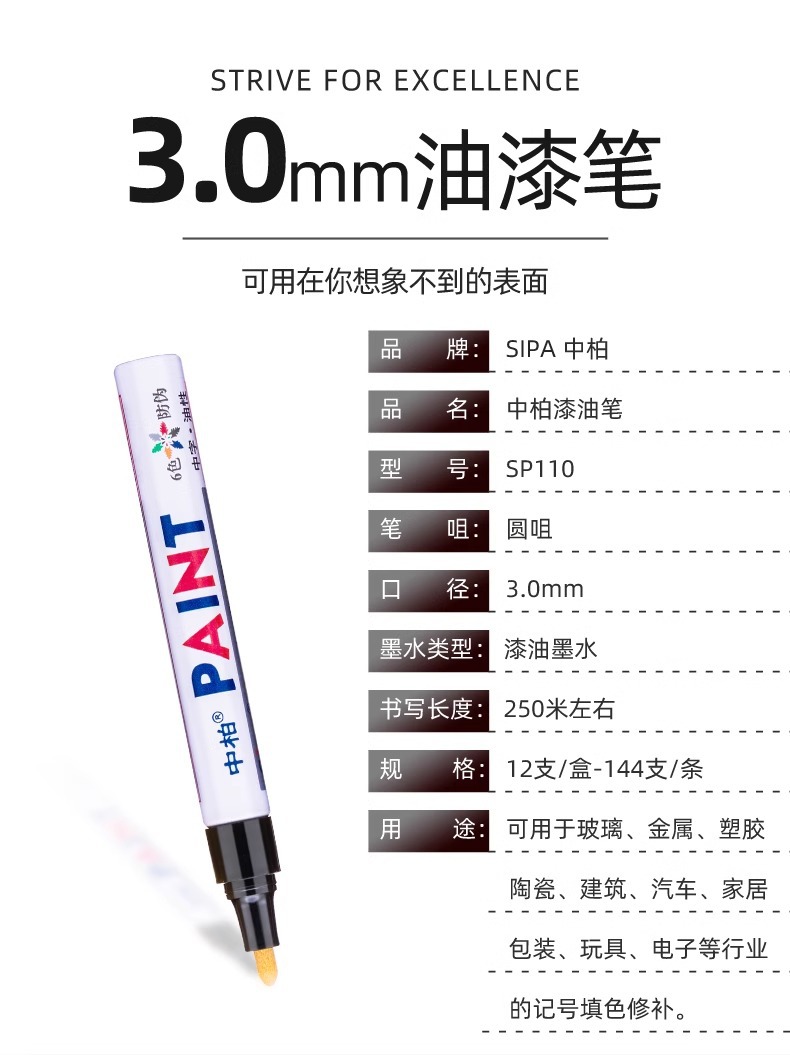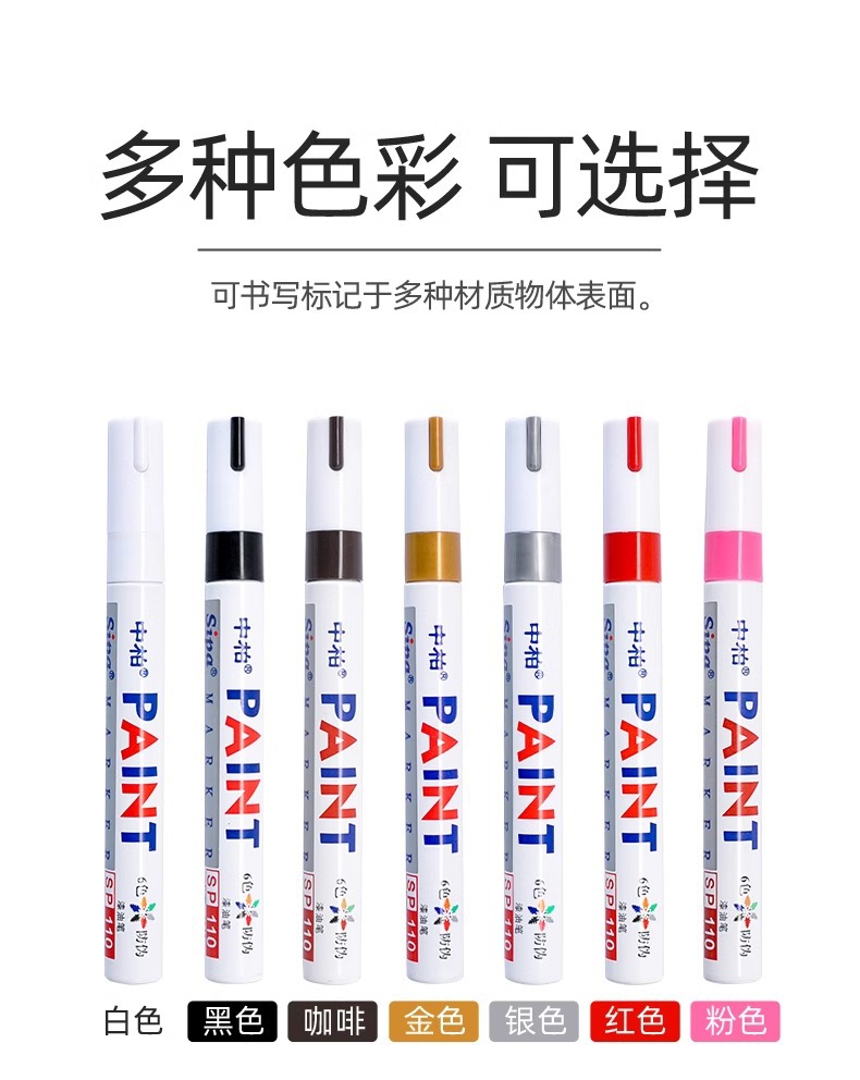SIPA Zhongbai ペイントペン SP-110 マーカーペン マーカーペン アートカラー 防水 速乾性 マーク タッチアップペン