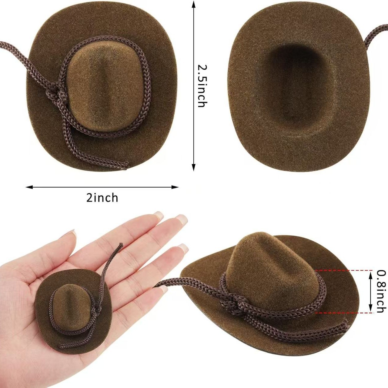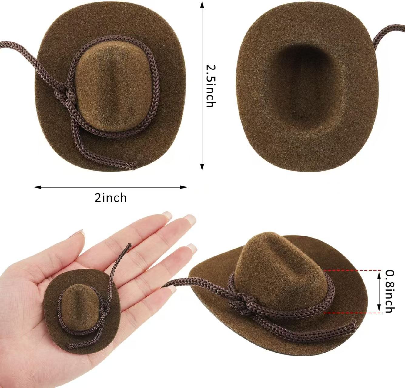 迷你玩具毛钻牛仔帽酒瓶帽子公仔棕色小牛仔帽子小宠帽子