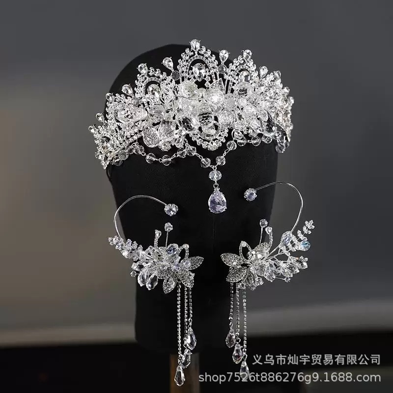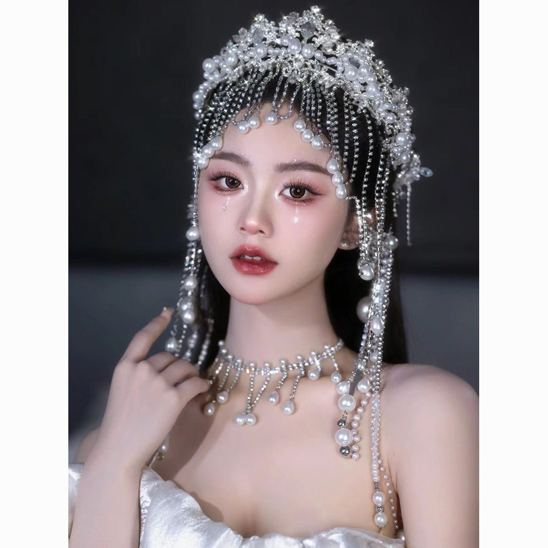日韩新娘头饰奢华大气皇冠闪亮流苏额饰项链套装结婚纱礼服高级感