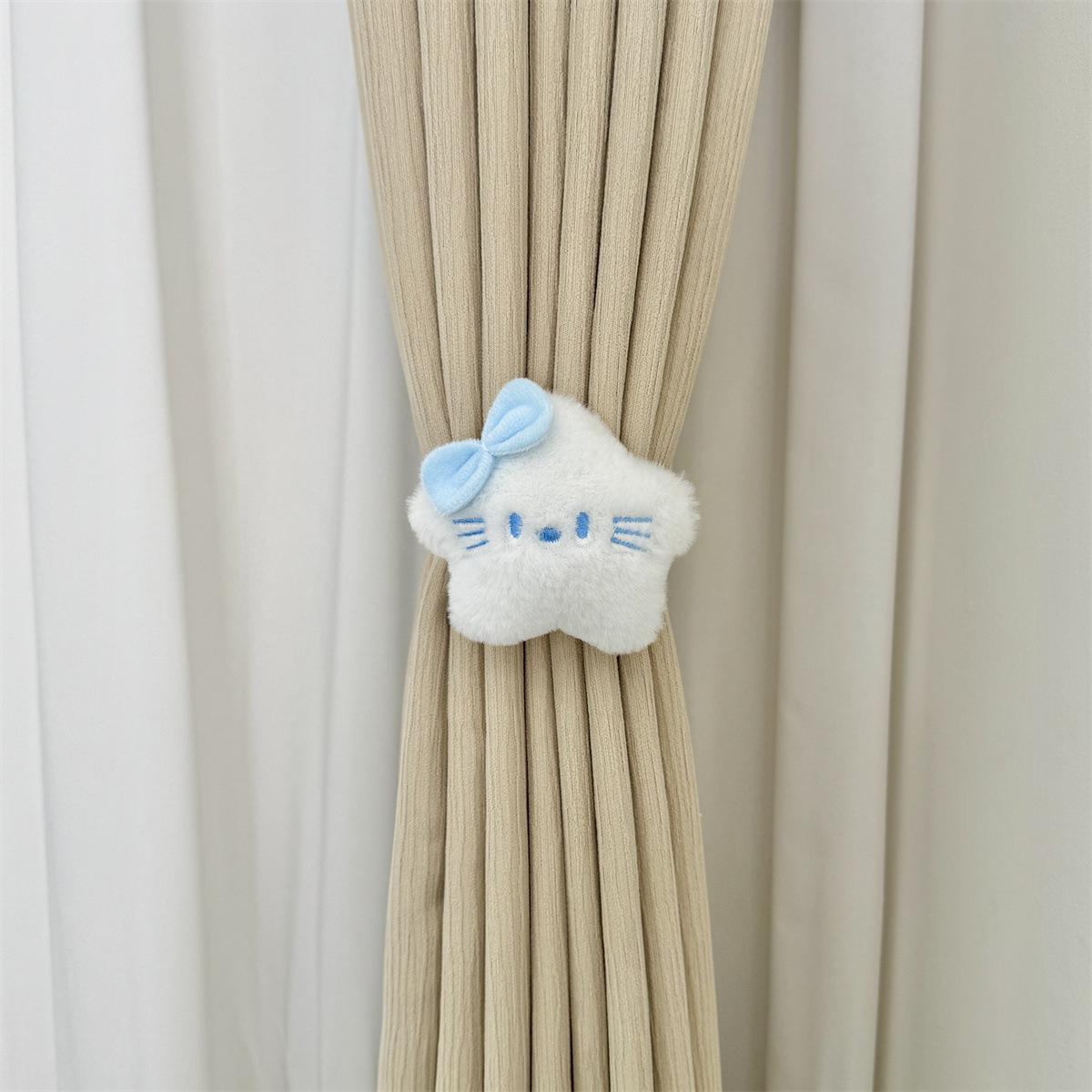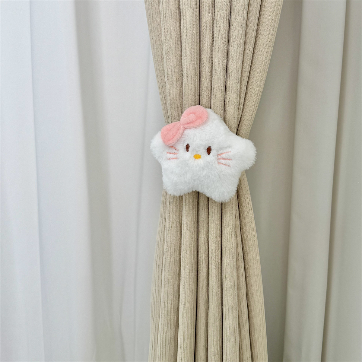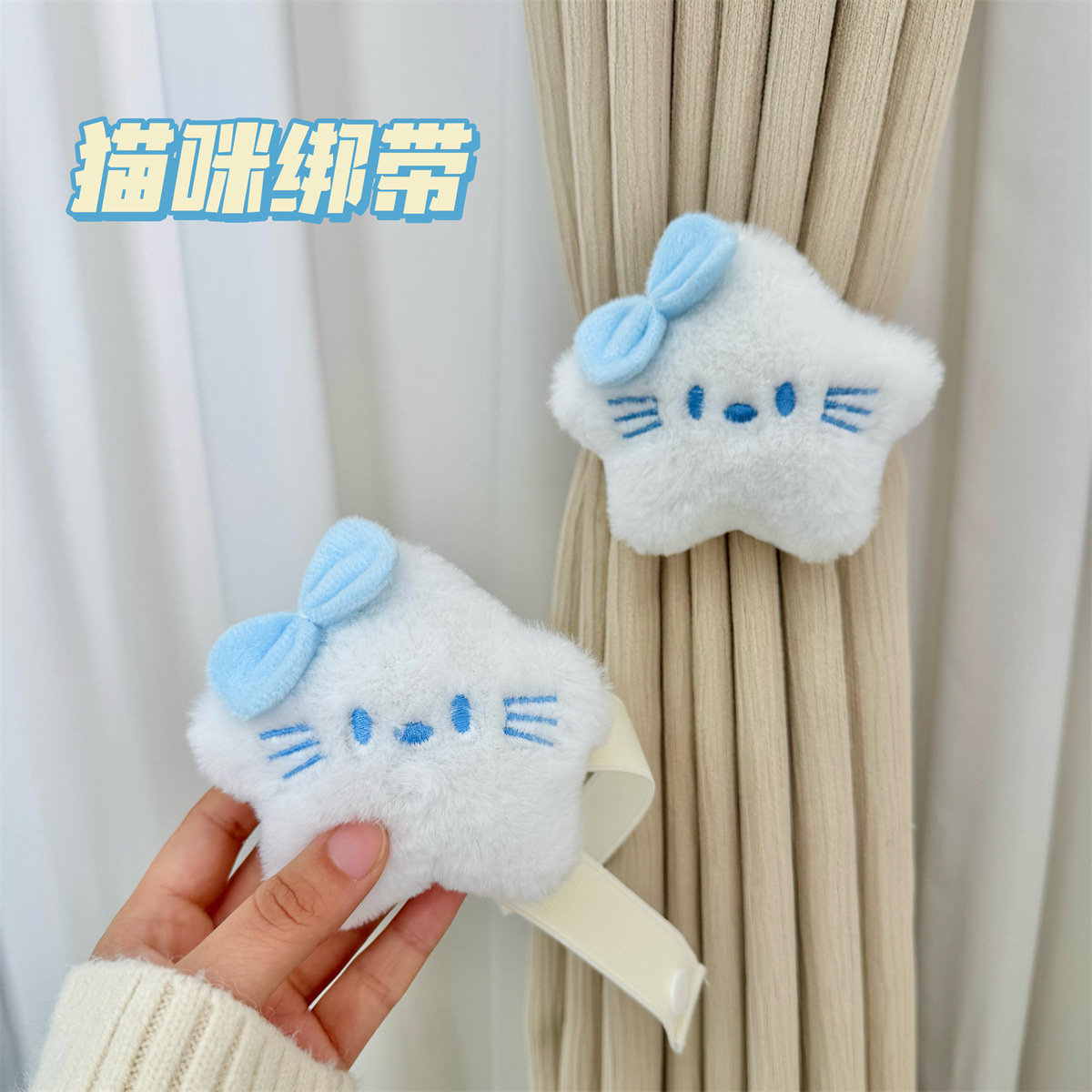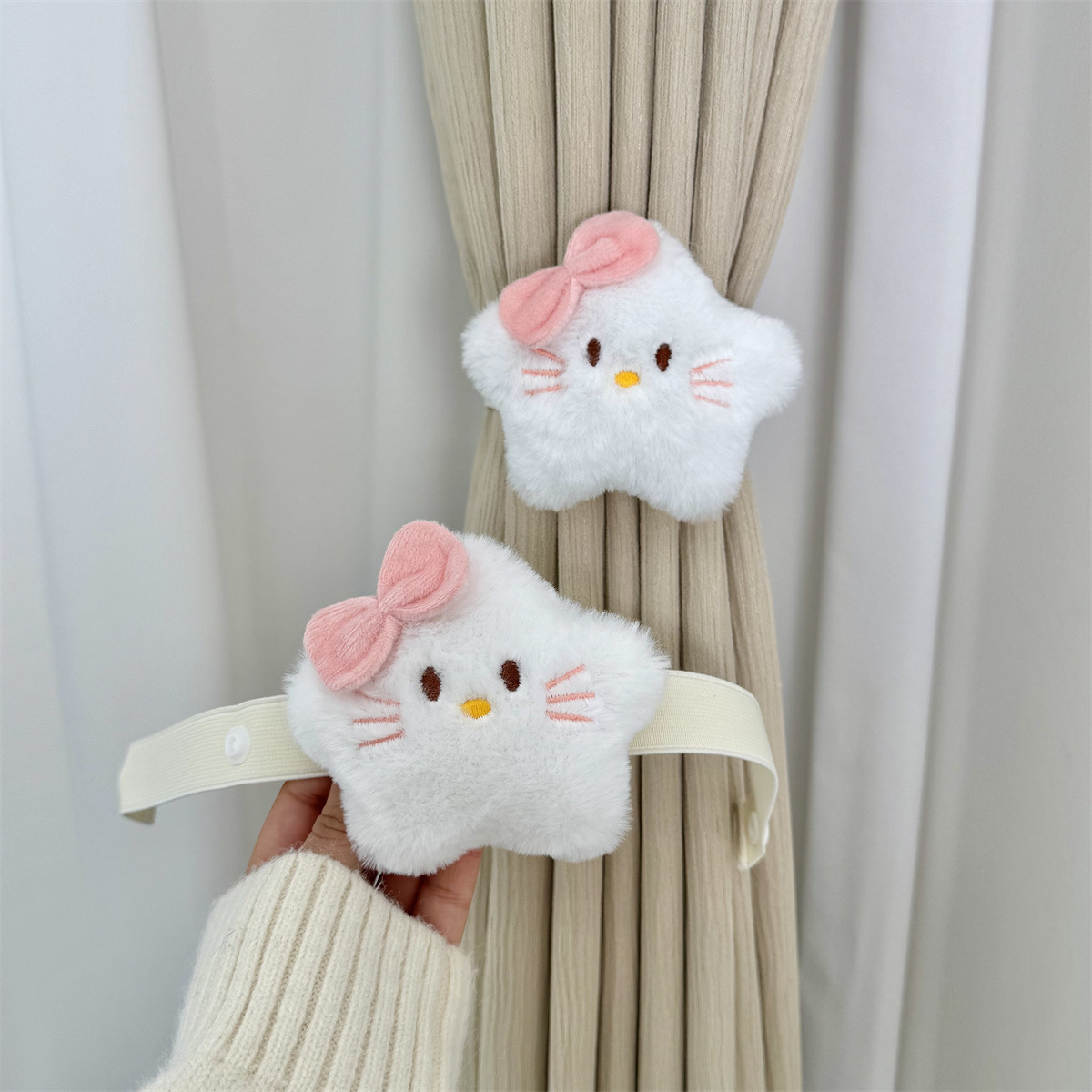 可爱卡通毛绒Kitty布帘少女风hello收纳弹力可调节女生房窗帘绑带