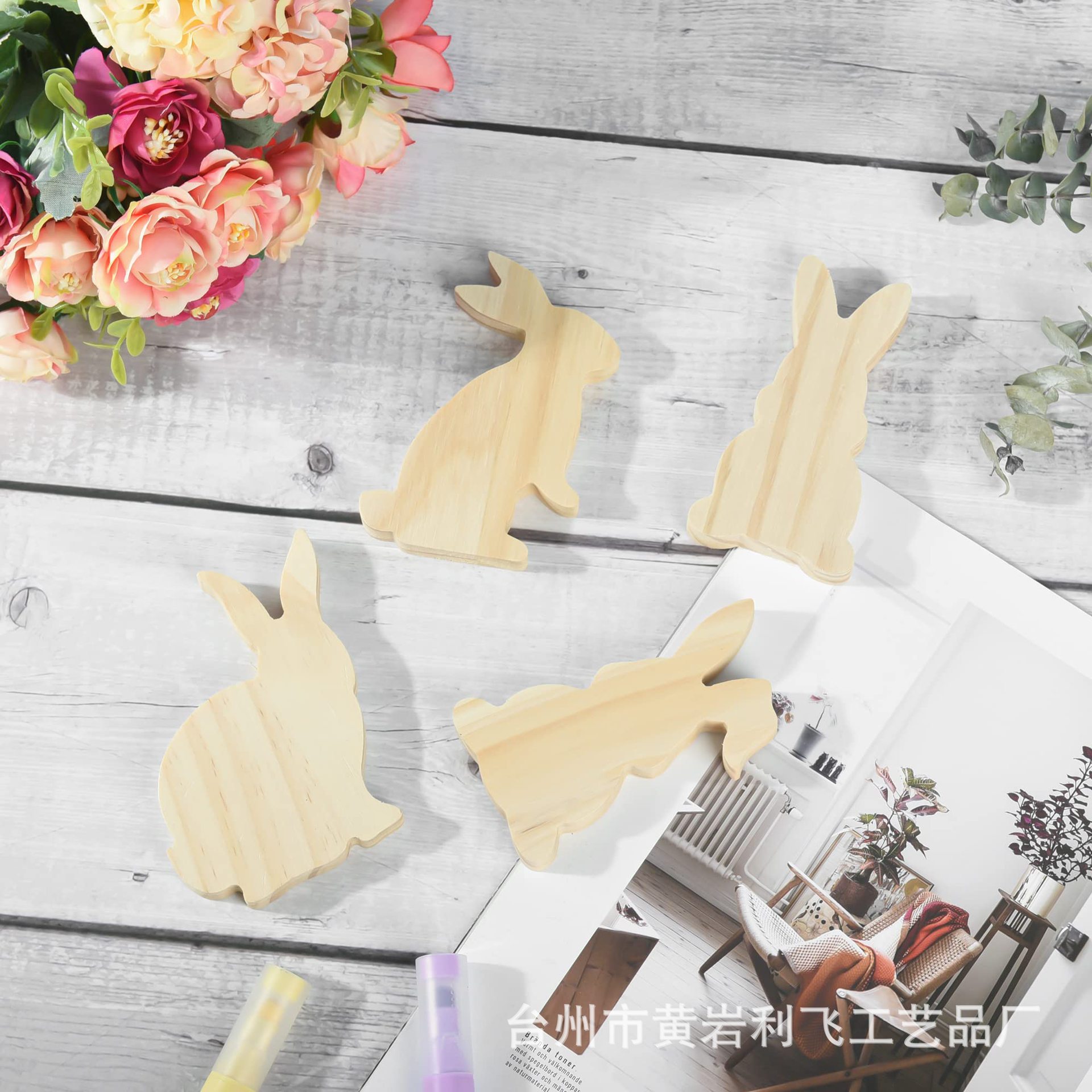 原木色レーザー切断ウサギ幼稚園diy児童絵画実木ウサギ置物イースター松木
