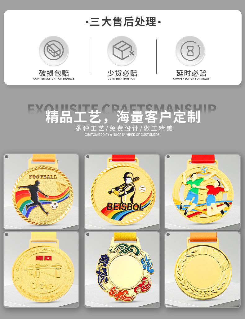 サッカー試合メダル運動会メダル無料デザイン試合金メダル銀メダル銅メダルイベント栄誉メダル