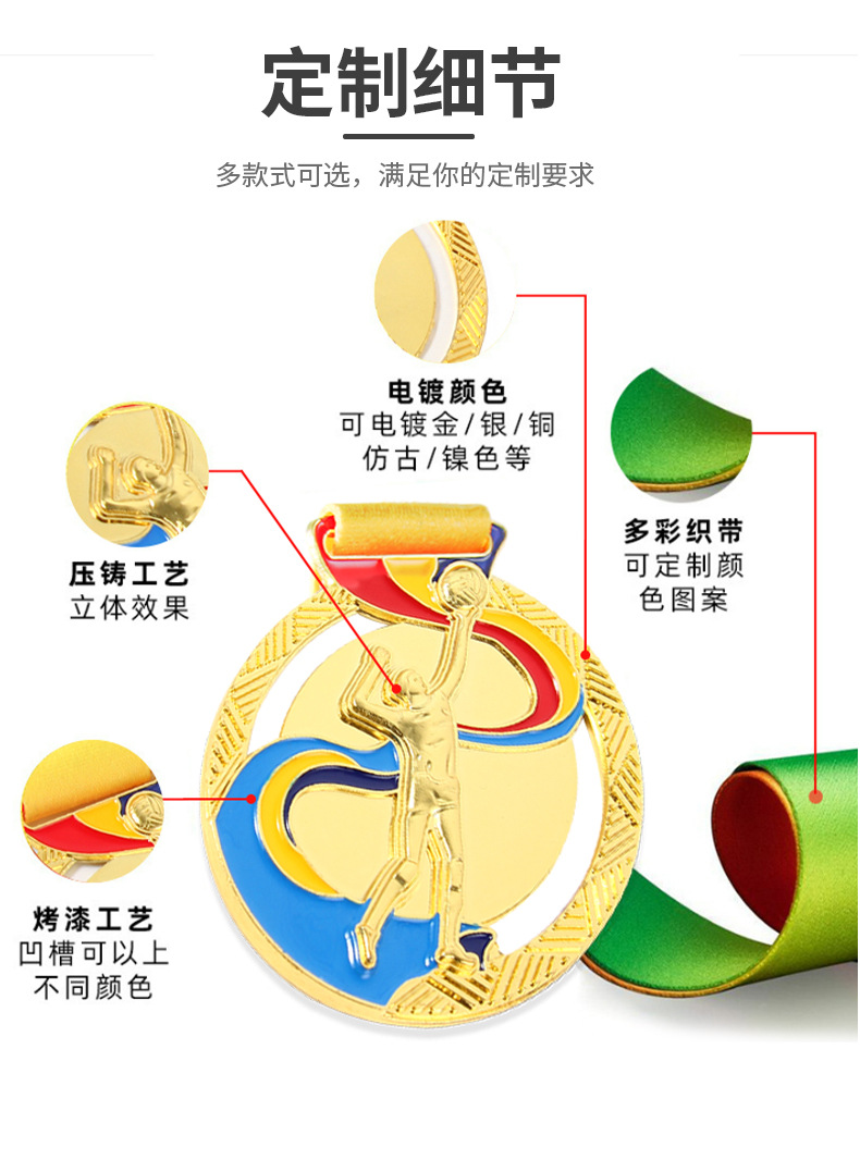 金属奖牌定制挂牌体育赛事纪念马拉松足球篮球学校运动会奖章定做