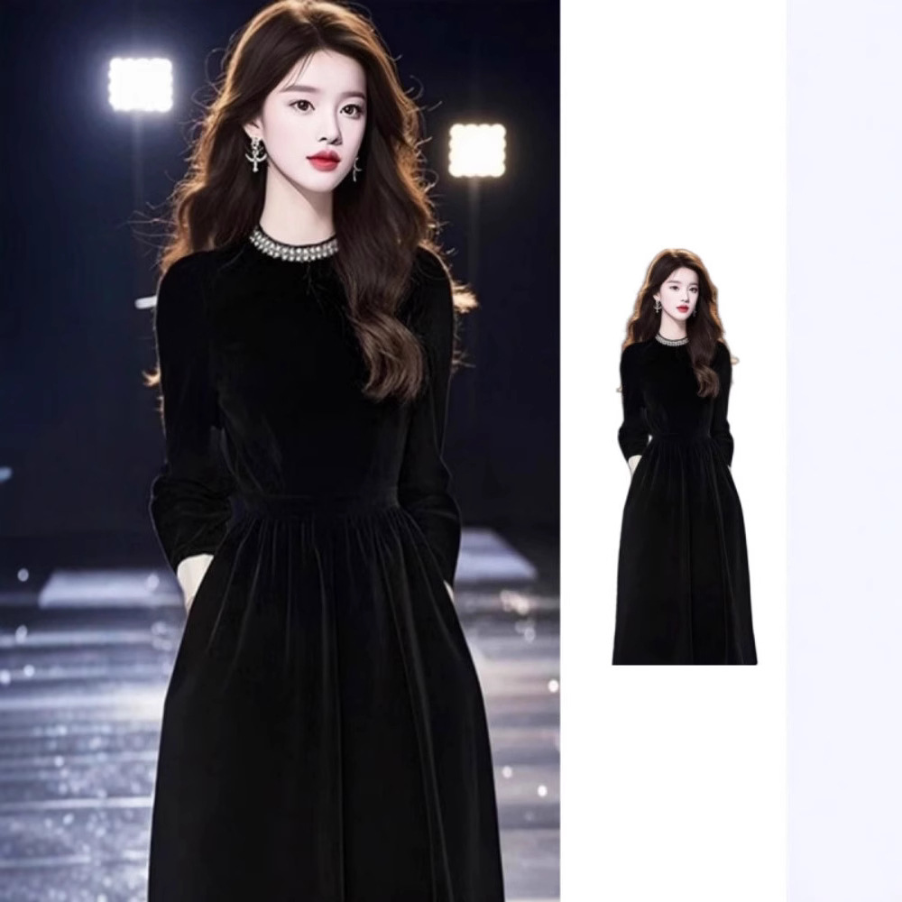 赫本风黑色短款连衣裙女春秋2025年新款高级轻奢风气质中长款裙子