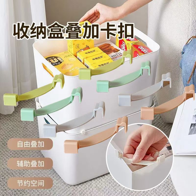 新商品の蓋なし収納ボックスにカードを重ねて直角の収納かごのサポートバーを固定して棚の空間を置いて神器を利用して整理します。