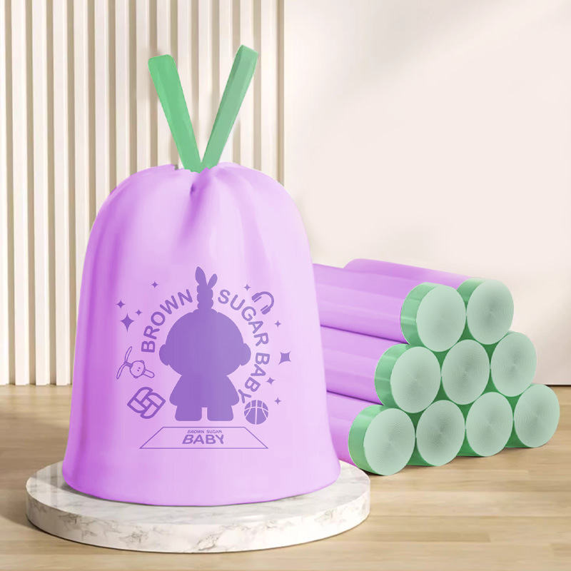 ひも引きプリントゴミ袋60匹かわいいプリント家庭用ゴミ袋厚さ45*50cm引きゴミ袋T