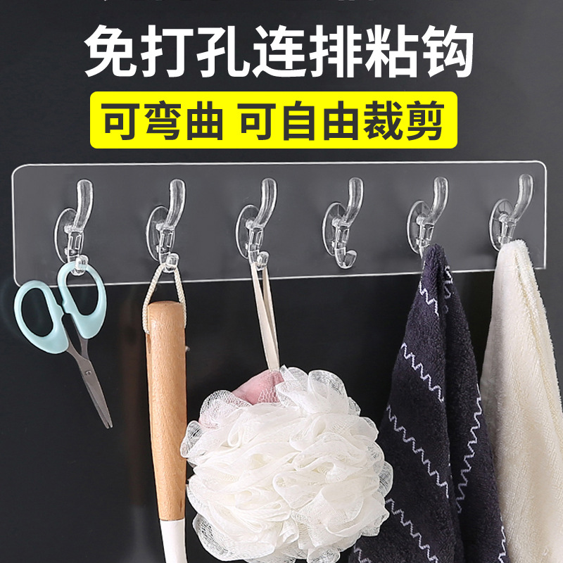 連続フックは穴を開けないで、強力な粘着ドアの後にハンガーを掛けます。