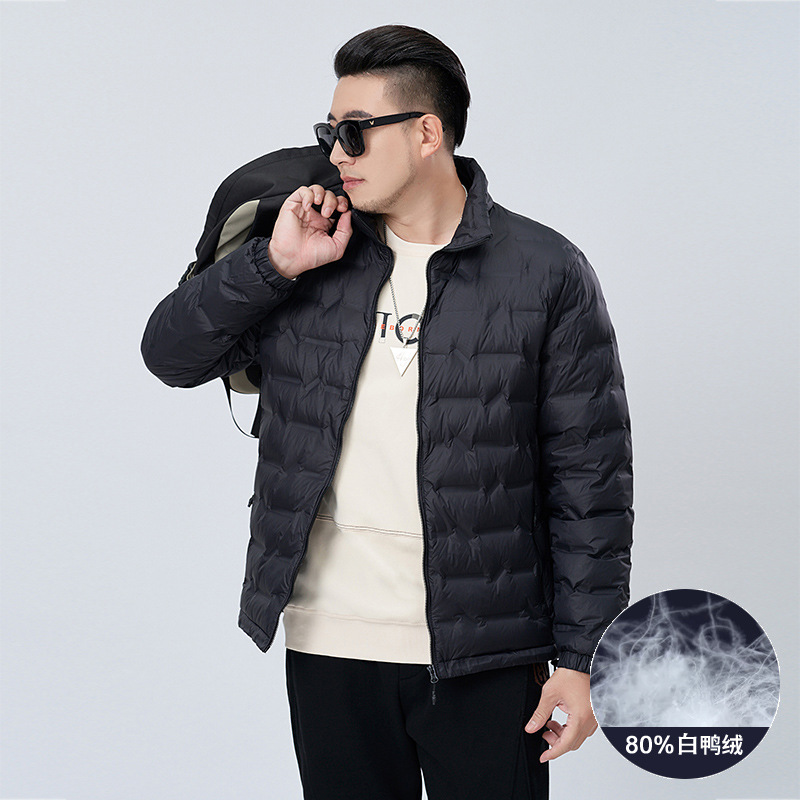 【グラフェンの薄いダウンジャケット】大きいサイズのメンズの新型の立襟の純色の80白鴨の羽毛のコートはゆったりしています。