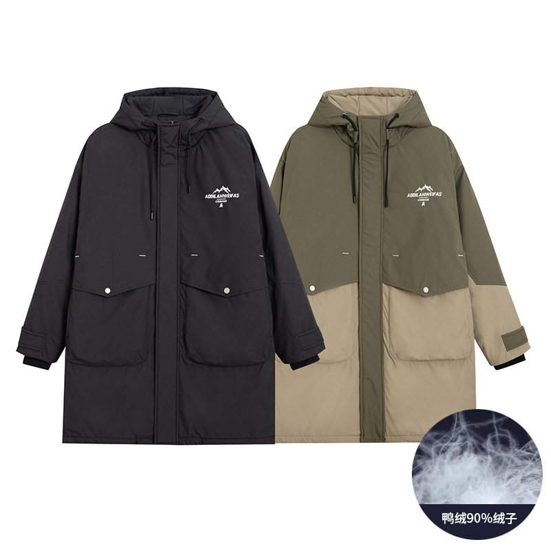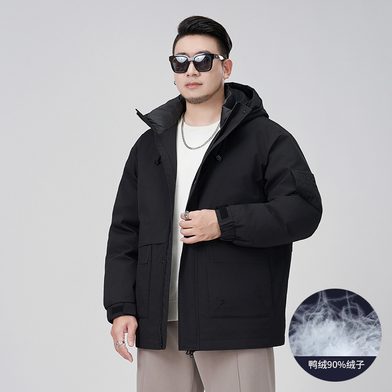 90白鸭绒羽绒服大码男装加厚保暖时尚刺绣连帽男士中长款外套宽松