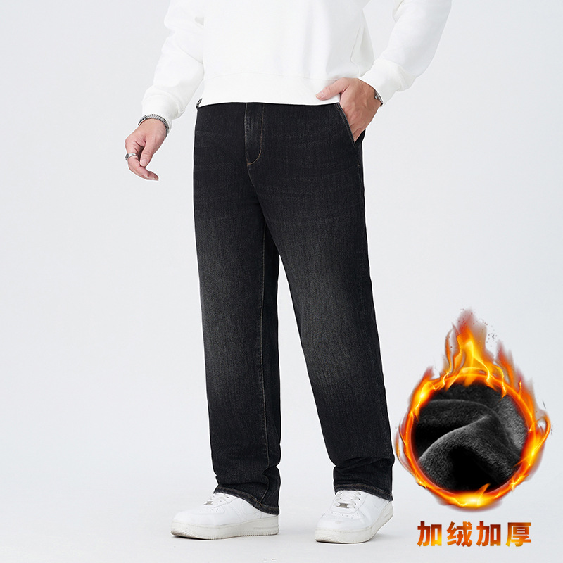 澳羊绒牛仔裤大码下装冬装加绒保暖抗寒复古直筒加厚宽松男士长裤