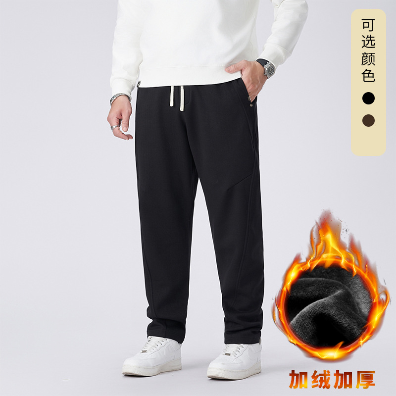 大码下装冬季新款休闲裤宽松舒适百搭直筒裤子加绒加厚保暖卫裤男