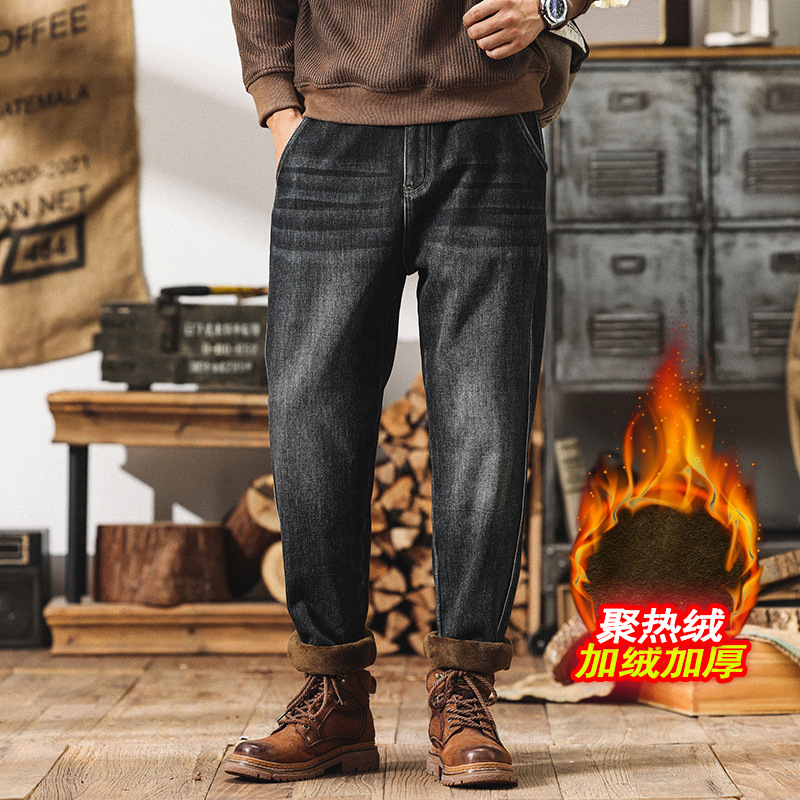 R2034 | ビッグサイズの男性服冬の新製品とジーンズの男性がゆったりとした保温レトロなストレートズボン