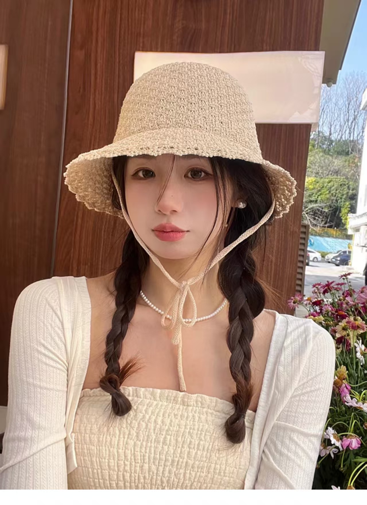 帽子のグレード 高品質レースバックスリットレースアップ麦わら帽子バケットハット