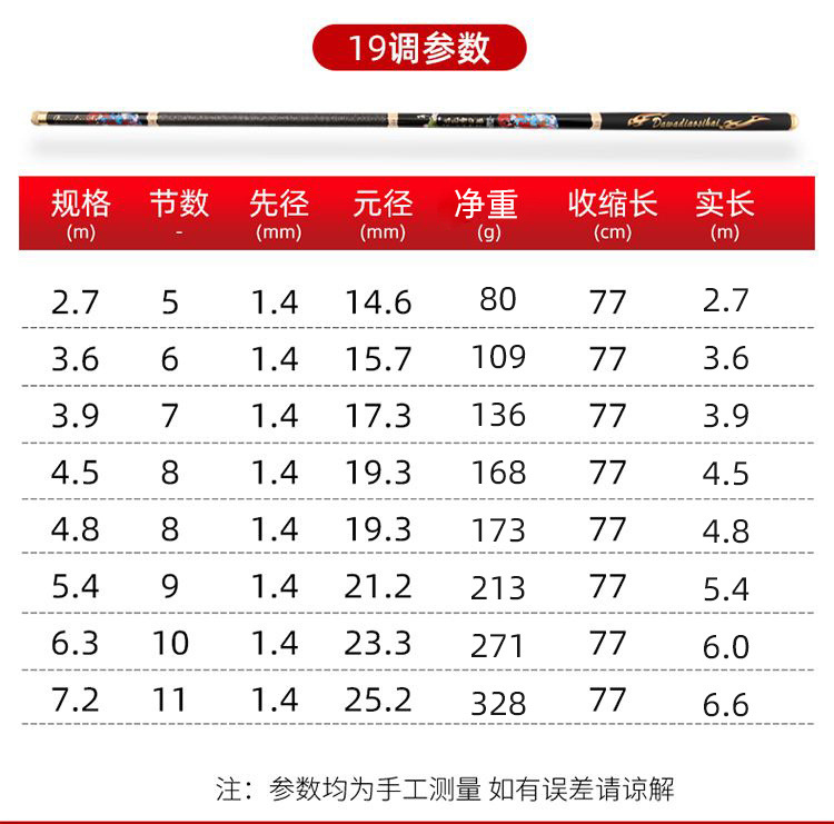 渓流竿短節19調手竿竿超硬超軽19調軽硬直釣竿大物釣竿短節大物