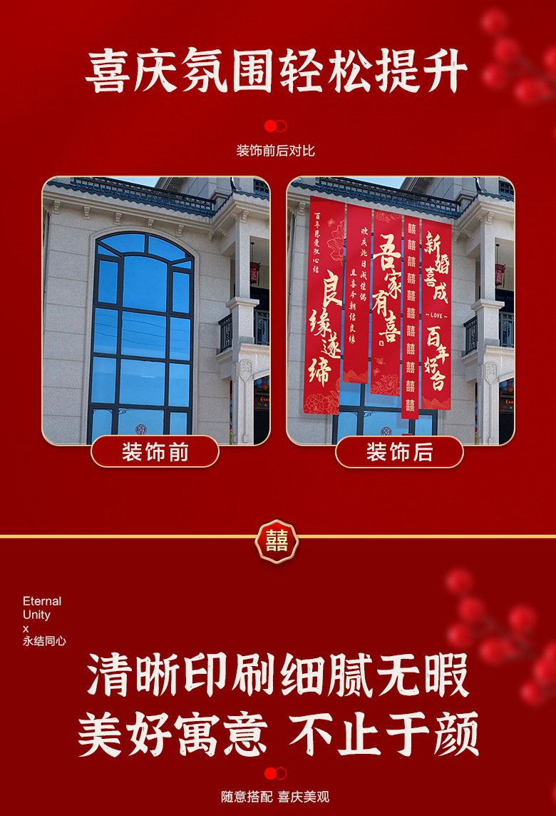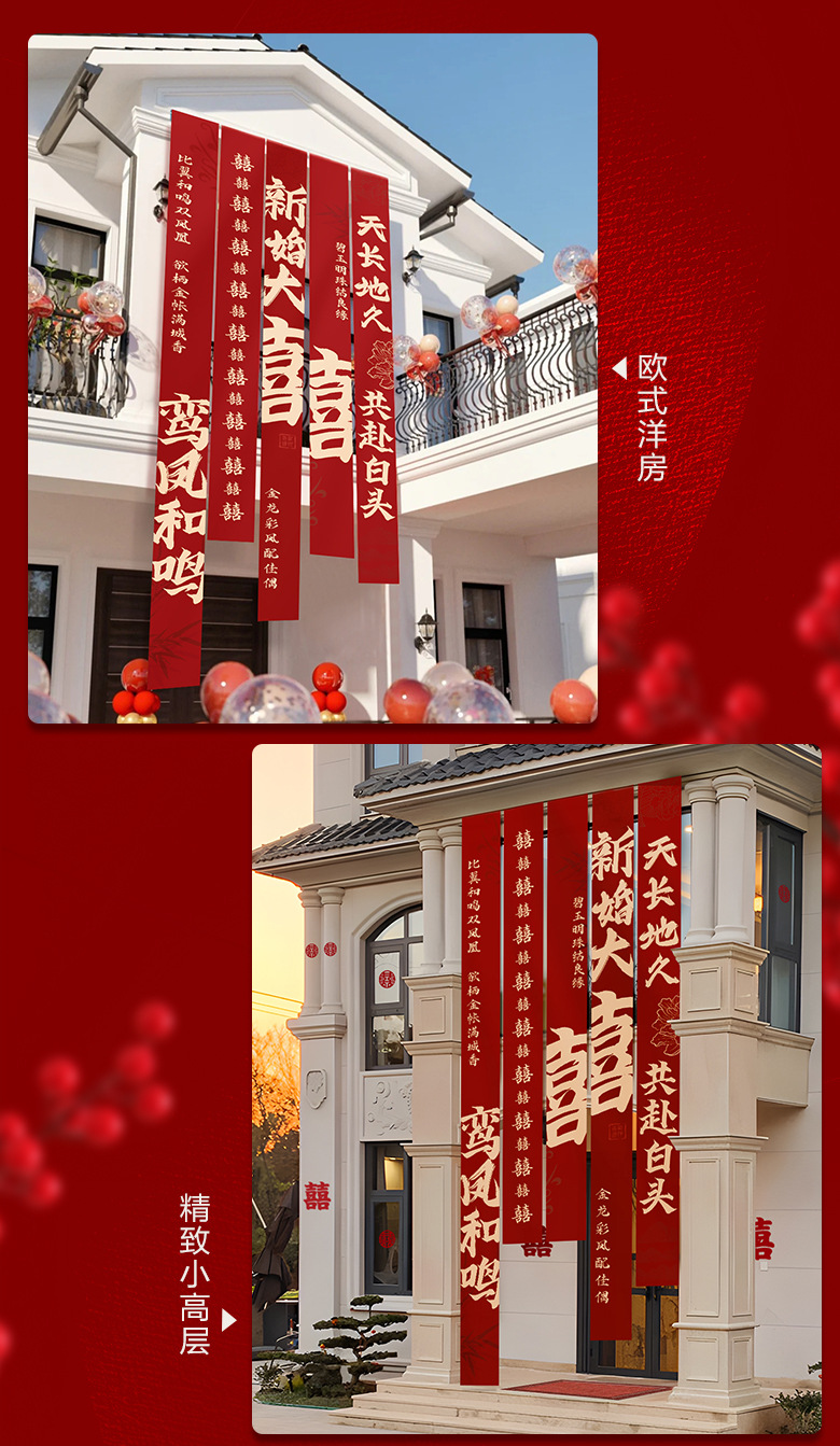 结婚装饰户外农村院子婚礼布置纱幔条幅拉花套装喜庆庭院大门挂饰