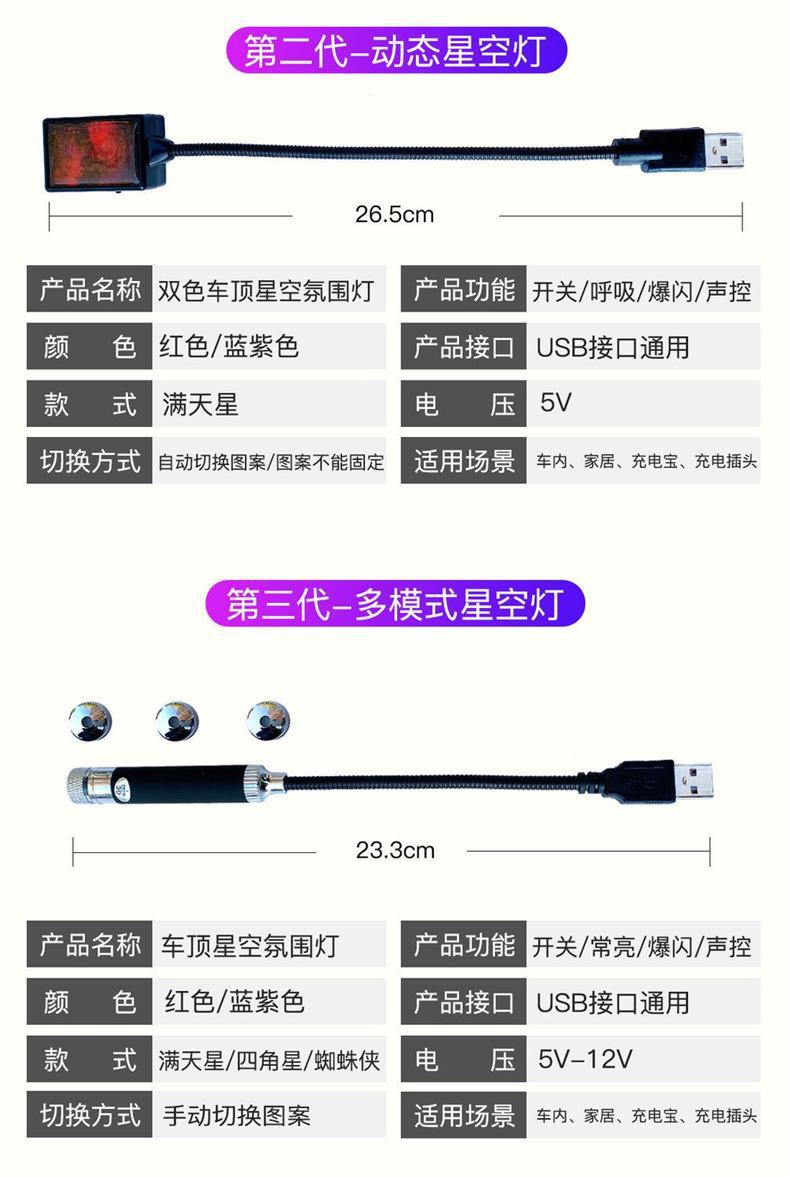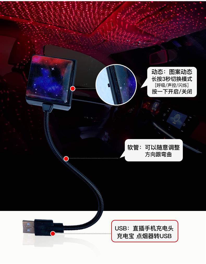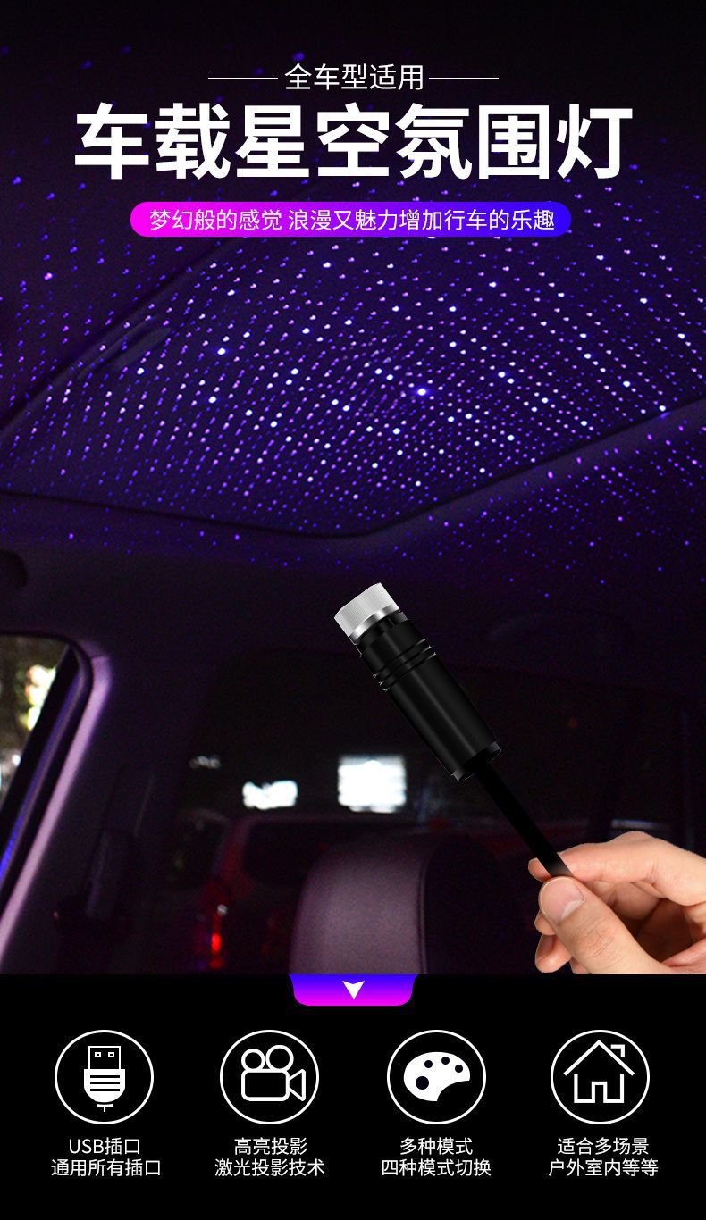 車載迎賓灯usb星空灯レーザー投影自動車音響制御雰囲気灯車頂満天星led雰囲気灯