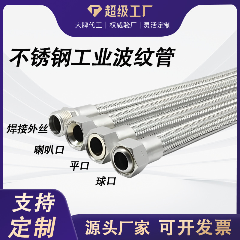 工業用波形パイプ水蒸気鋼線編組パイプ高温防爆ホース 304 ステンレス鋼金属ホース