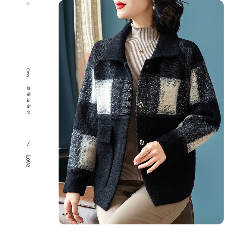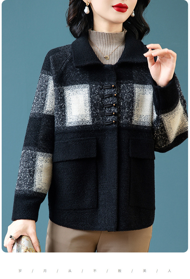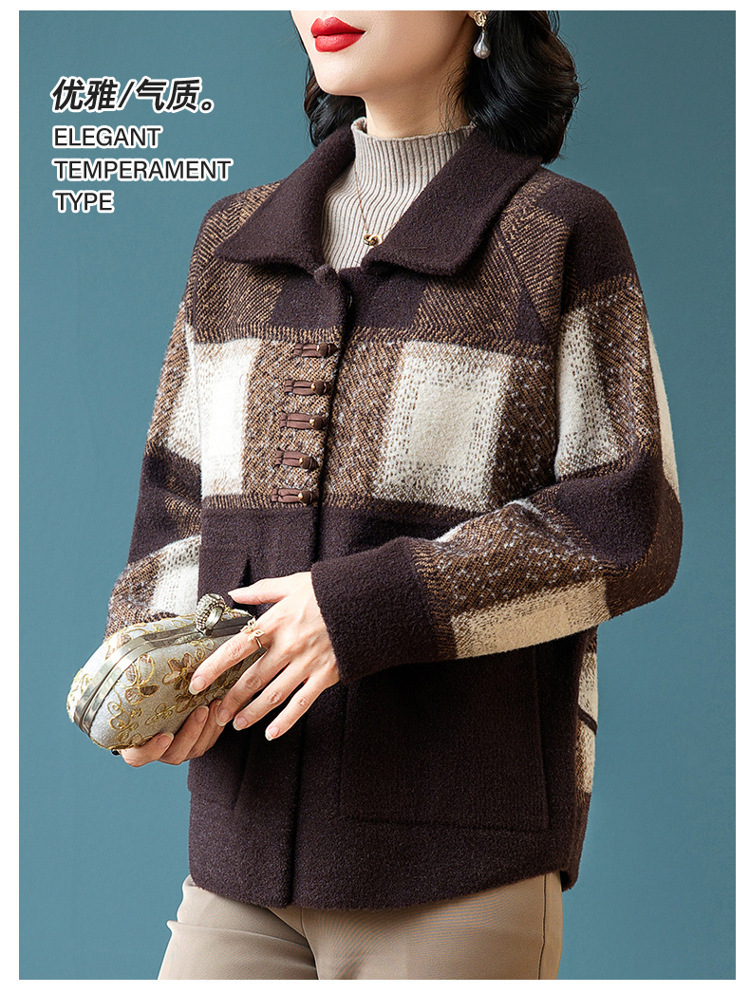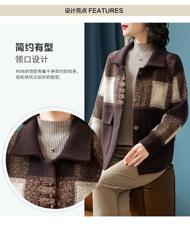 2024年新作ママ向け春服ジャケット、中高年女性向け秋冬セーターカーディガン、春秋おしゃれな大きいサイズトップス