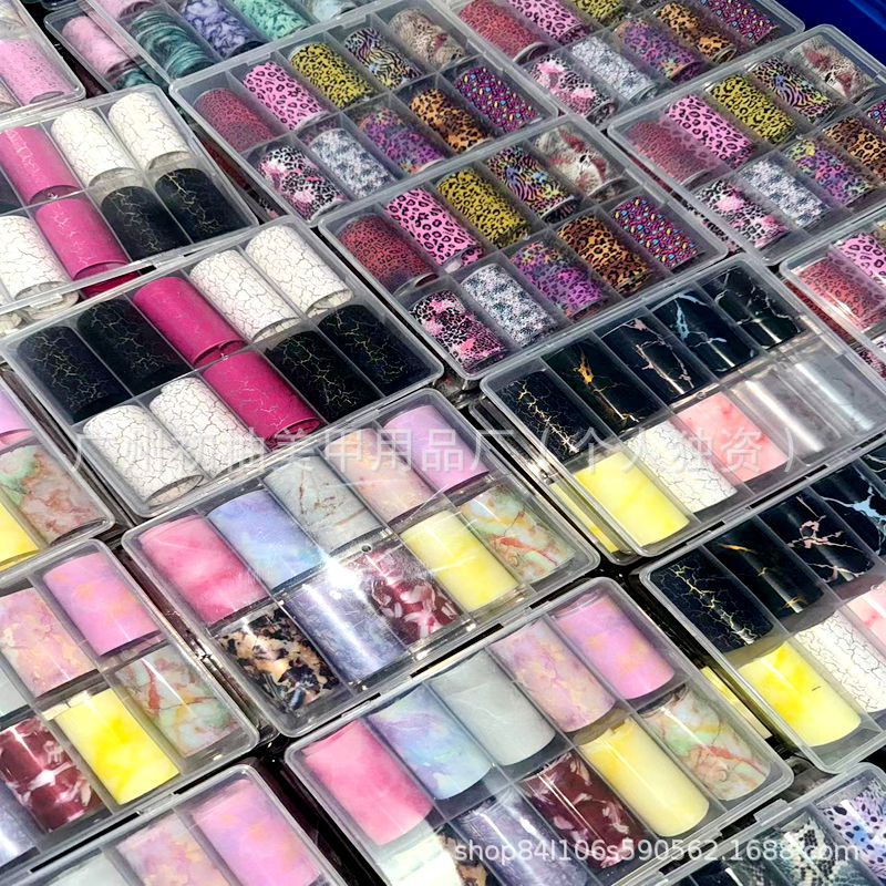ヨーロッパとアメリカのホットガール新しいヒョウ柄ネイルアートエッセンシャル転写紙クロスボーダー卸売 10 グリッド秋と冬のネイルアート星空転写紙
