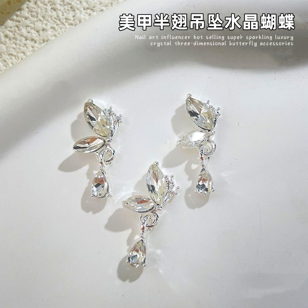 网红轻奢蝴蝶吊坠合金美甲饰品爆闪半边立体蝴蝶翅膀指甲装饰配件
