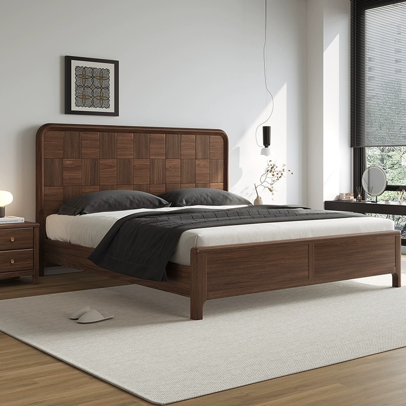 南米黒胡桃木全実木ベッド北欧寝室ベッド現代シンプル1.5メートル1.8メートルツインベッド家具