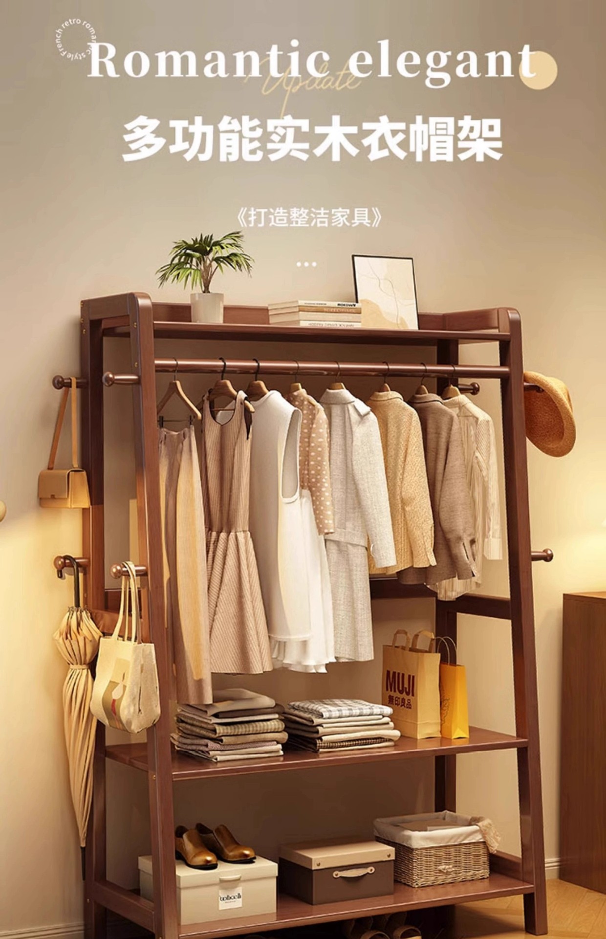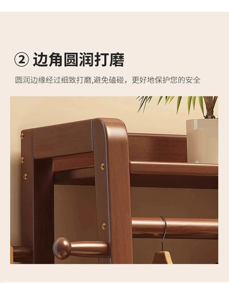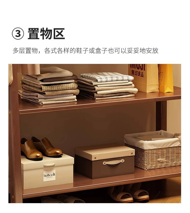 实木衣帽架落地卧室挂衣架家用置物架换鞋凳一体收纳架室内衣帽杆