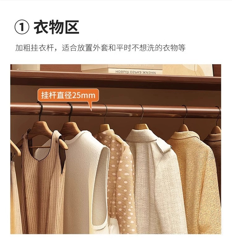 实木挂衣带抽屉衣帽落地卧室床头置物一体家用衣服纳