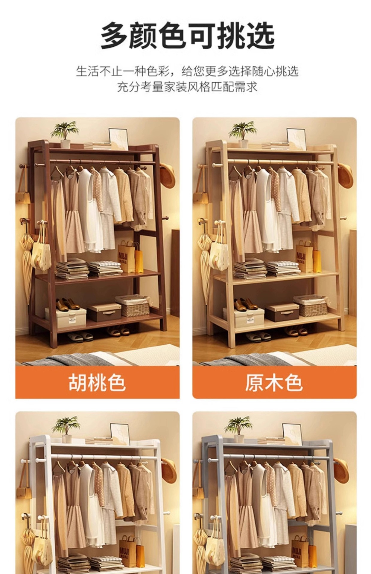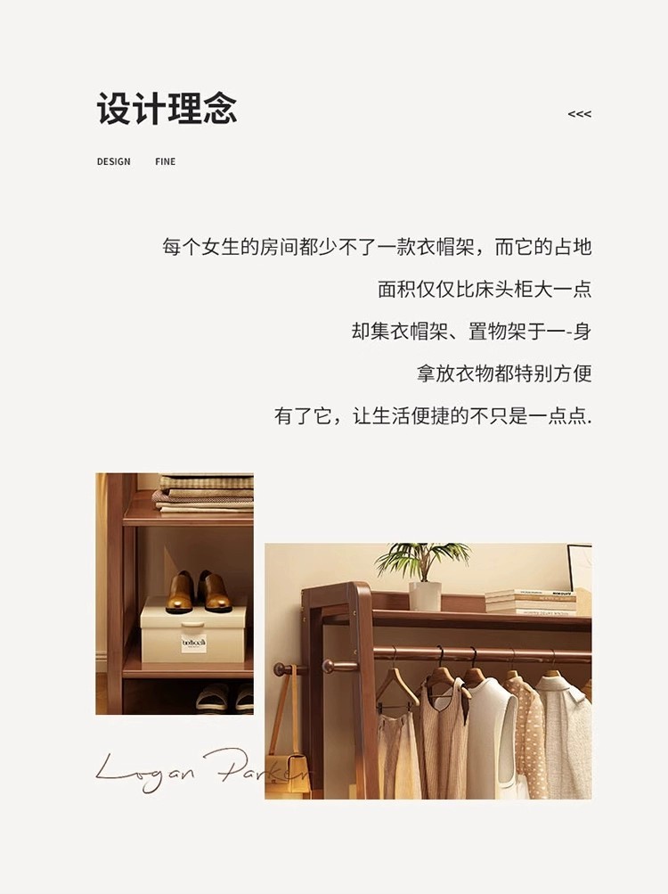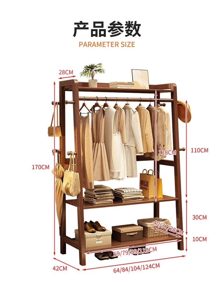 实木挂衣架落地卧室带抽屉衣帽架家用衣服收纳架房间多功能置物架
