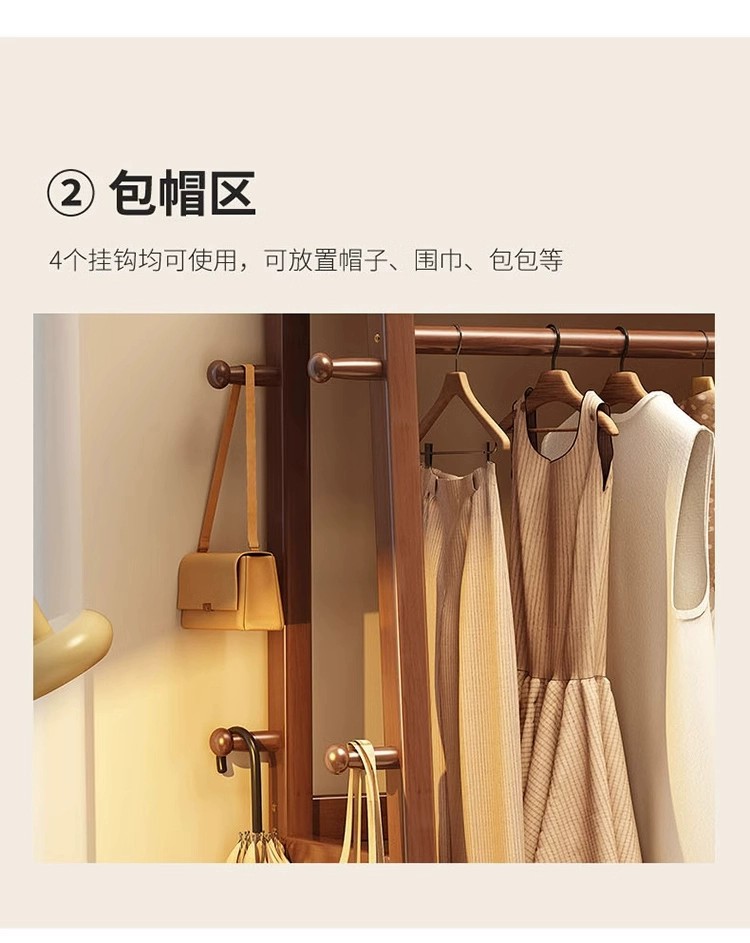 实木衣帽架落地卧室家用挂衣架抽屉穿衣镜一体置物架试衣架