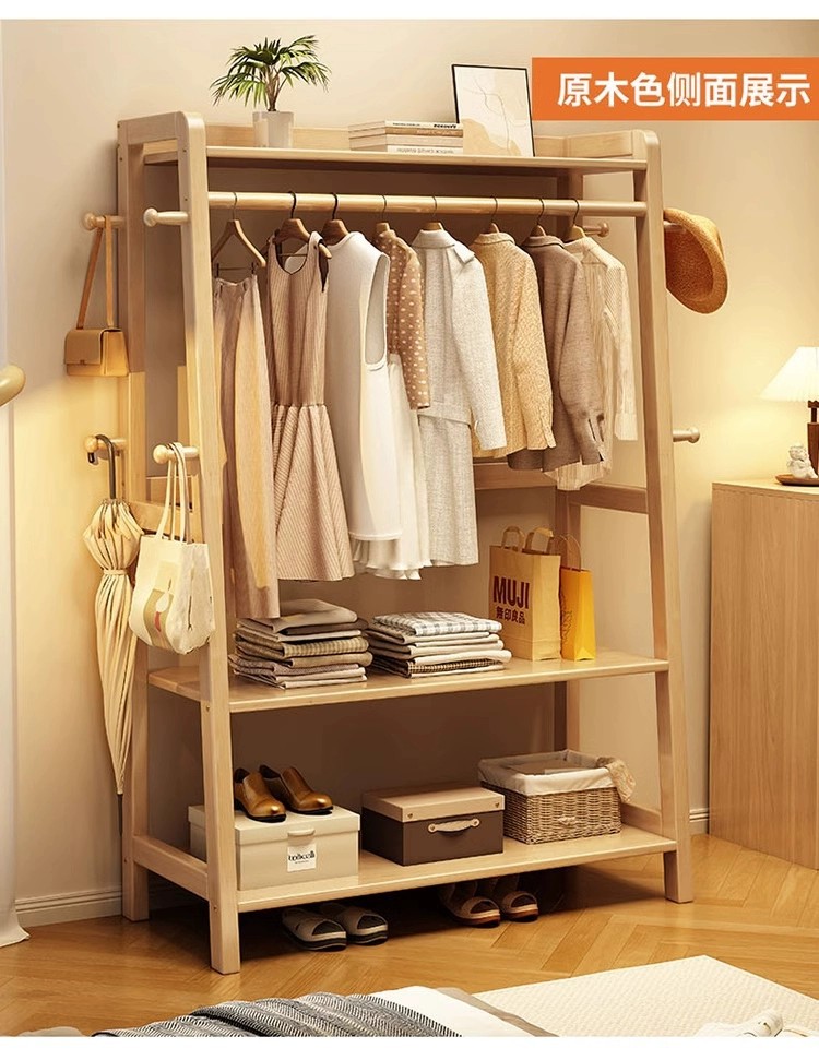 実木ハンガーが床に落ちた寝室ハンガー家庭用フードラック部屋に服を置く棚ベッドの尾収納棚