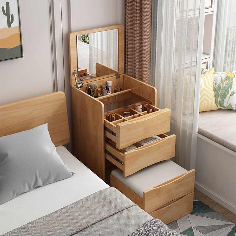小型カバー化粧台ミニベッドヘッドキャビネット化粧テーブル収納キャビネット一体寝室全実木北欧化粧台