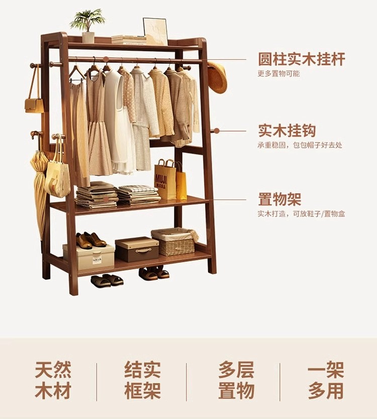 实木挂衣架落地卧室衣帽架家用房间晾衣服架子室内简易立式置物架